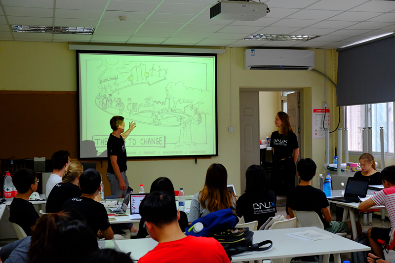 图3 荷兰代尔夫特大学的Catelijne教授和Ryan老师为北师大欧洲杯 MAP-UX方向四校联合工作坊同学们分享演讲