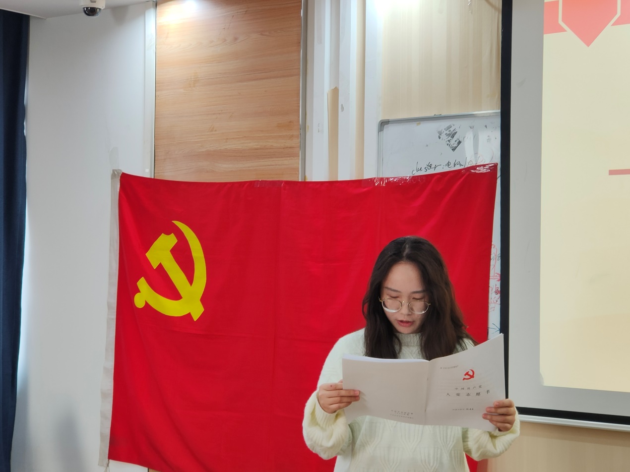 最后,党员同志进行无记名投票,并由支部书记宣读支部大会决议。最终,3名同志均被发展为预备党员,她们也分别发表了自己的感想,一致表示感谢支部其他同志的帮助和付出,自己要更加积极向党组织靠拢,更严格要求自己,争做合格党员! 在会议接近尾声时,支部书记带领全体老党员和3位新发展党员一起宣读入党誓词。此次发展大会圆满结束。