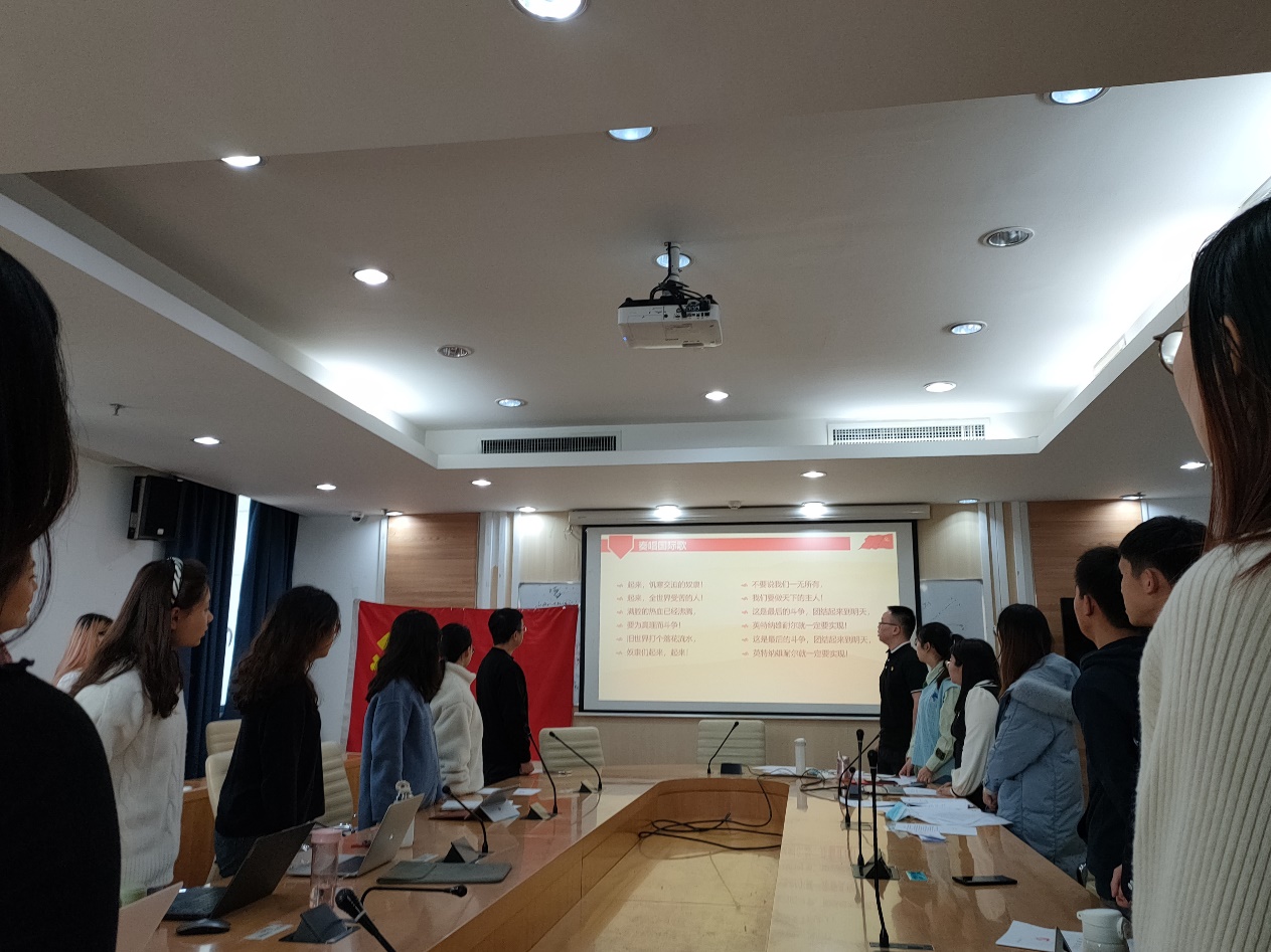 2021年11月27日下午2点,欧洲杯 研究生第六党支部党员发展大会和首届党员政治生日会在后主楼1316A召开。会议邀请了支部指导老师胡思源老师到场,本次会议由支部书记李紫菲同志主持,8名正式党员、2名预备党员、11名积极分子参与。 第一部分,党员发展大会。大会的主题是针对姚璇琛、陈素素和刘晨淼3位同志的入党申请及相关情况进行讨论和表决。 会议开始,党支部全体成员起立,合唱《国际歌》。