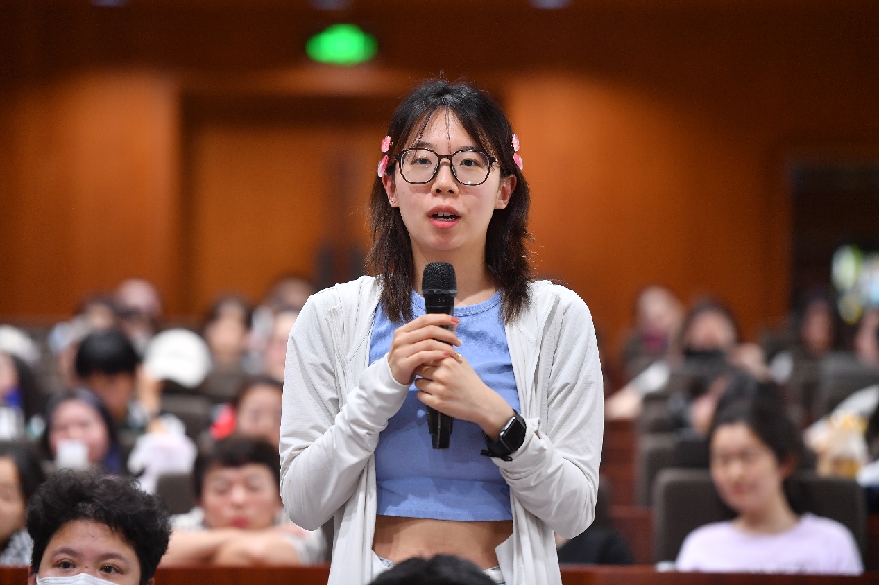正念体验结束后,卡巴金教授结束了自己的讲解,开始回答师生们的问题。 本次讲座中卡巴金老师耐心地回答了两位北师大师生的问题。