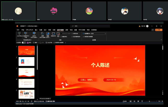 接着,12名发展对象依次从自我介绍、入党动机、个人表现、不足和改进四个方面进行了三分钟的自我陈述。