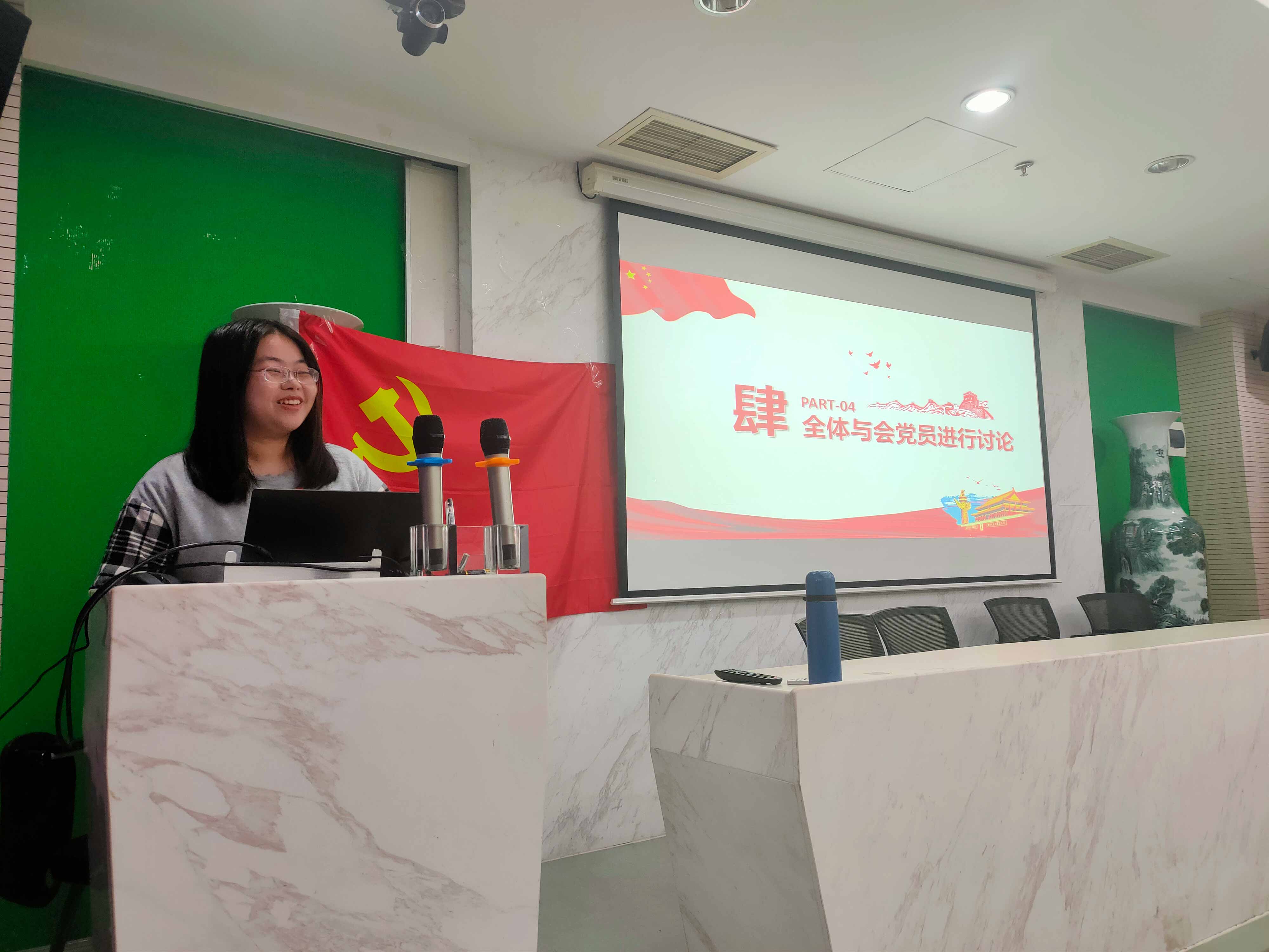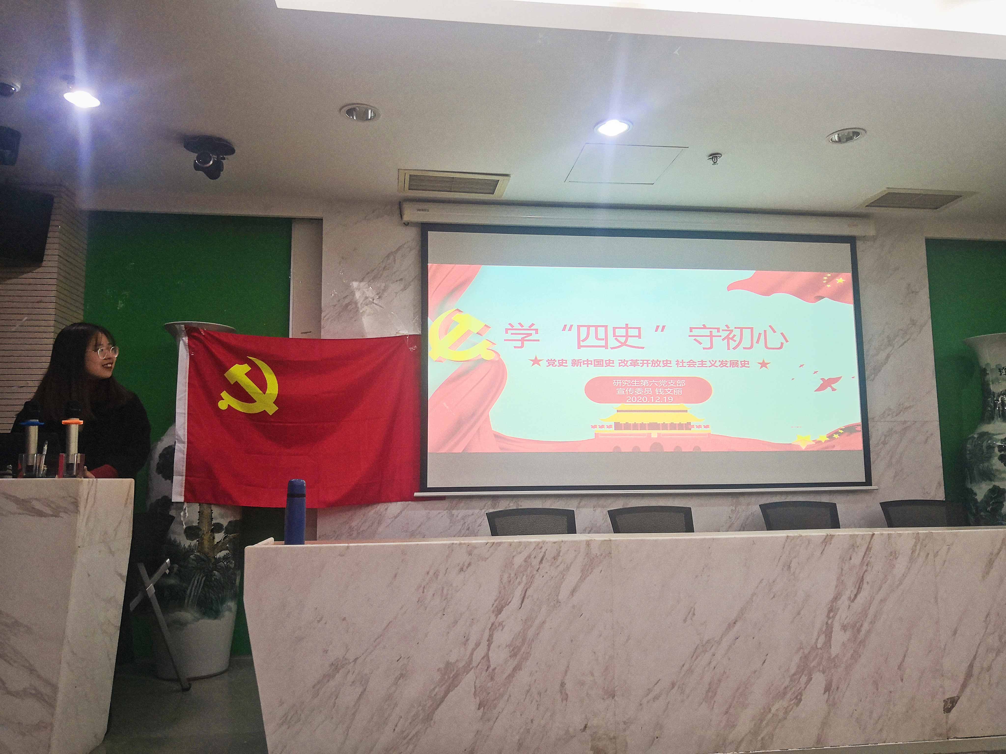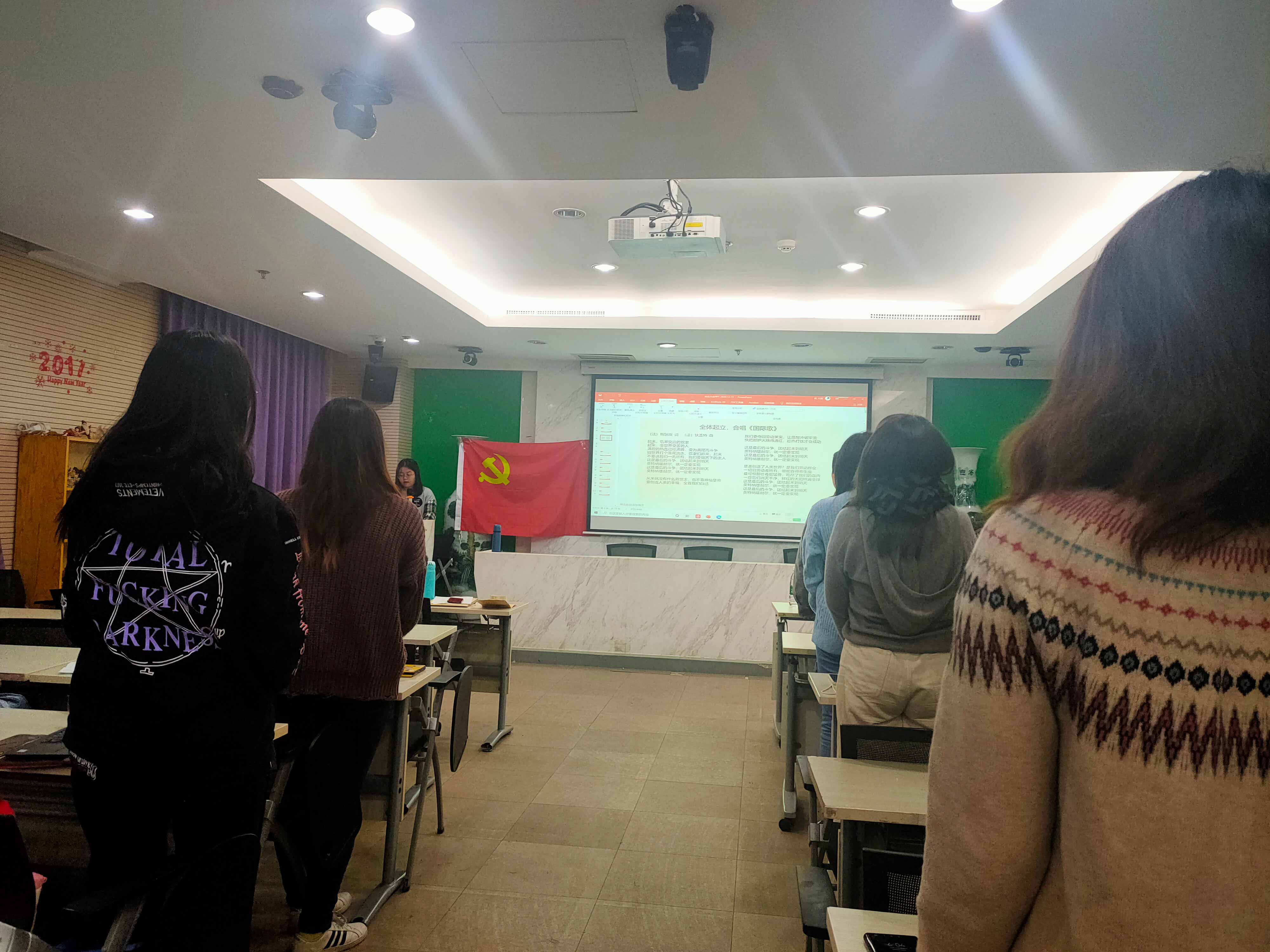 2020年12月20日晚18点至19点30分,心理学院研究生第六党支部开展预备党员转正大会暨主题党日活动。其中,党日活动的主题是“学’四史’守初心”,活动内容是通过学习2020年6月,习近平总书记所指出的,希望广大党员特别是青年党员认真学习马克思主义理论,结合学习党史、新中国史、改革开放史、社会主义发展史的内容。在学、思、践、悟中坚定理想信念,将坚定理想信念和“四史”紧密联系在一起。活动目的深入学习贯彻落实习近平总书记关于党史、新中国史、改革开放史、社会主义发展史(简称“四史”)学习教育精神,持续深化爱国主义教育,不断深化“四史”学习教育,切实增强在实践中守初心、担使命的思想自觉和行动自觉。以下是预备党员转正大会和主题党日活动的主要内容。 第一部分,预备党员转正大会 会议开始前,党支部全体成员面向党旗站立,合唱《国际歌》。 会议正式开始,首先是党支书李紫菲介绍支部的指导老师王文超老师,大家表示热烈欢迎。 随后,支部书记李紫菲介绍转正流程,并向大家预备党员金欣园的基本情况,宣布实际出席正式党员人数达到要求人数,可以召开会议。接着预备党员金欣园宣读转正申请书,向党组织汇报了自己在预备期内的思想、学习和工作等各方面的情况,并反思自身的不足之处。金欣园同志表示她将不断学习完善自己,提高自己的理论水平。 会议第四项议程,全体与会党员进行民主评议。两位入党介绍人介绍转正申请人的相关情况,提到金欣园同志在预备期内主动向支部提交思想汇报,积极参与每次党日活动等支部活动,并且认真学习,关心同学,并建议她可以增加一些主动实践和学习的机会,在党支部中积极发言,在场的同志们也表示积极肯定,同时鼓励她不要以此为终点,继续学习。 随后,支部大会全体正式党员进行无记名投票,正式党员邹子兰为计票人、张艳秋为监票人。全票通过金欣园同志转为正式党员。支部书记宣读支部大会决议。 最后,转正党员发表转正感言,金欣园同志表达了自己能够如期转正的激动之情,也表示今后会按自己所承诺的,努力做一名优秀的党员! 第二部分,“ 学’四史’守初心”主题党日活动。 支部宣传委钱文丽同志对“四史”的含义进行讲解,对为什么学“四史”、如何学好、怎样做好以及学习的意义做了详细介绍,并通过观看视频《感受七十年沧桑巨变》,增进了大家的感性认知,加深理论学习的记忆。 活动接近尾声时,王文超老师组织大家进行自我介绍。周婧怡同志向老师进行提问如何更好地学习党的理论,老师建议大家除了在思政课上的学习外,可以参加相关的讲座,也可以关注学工办定期为大家准备的书籍。 最后,支部成员进行了合影,纪念研究生第六党支部全体成员的线下会面。至此,研究生第六党支部开展的预备党员转正大会暨主题党日活动圆满成功。 供图、供稿:钱文丽 |