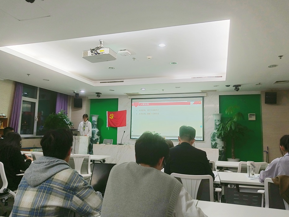 会议内容第一项,全体参会同志起立,奏唱《国际歌》。 会议内容第二项,王珂莼、孙梓耀等20名发展对象进行两分半钟的答辩,介绍了各自的入党动机、学习思想情况及社会实践情况,并深刻地对自己的优缺点进行了反思。在各位发展对象答辩之后,参会党员依据答辩表现和日常培养考察情况进行评分。