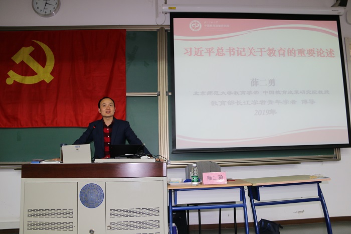 薛老师的讲座脉络清晰、内容丰富、论述精辟,引用了很多真实的案例和数据来说明国家的教育现状,引发了同学们的思考,让同学们对论述的科学内涵和精神实质有了更深入的认识。 供稿人:戴一纯 供图人:周娣