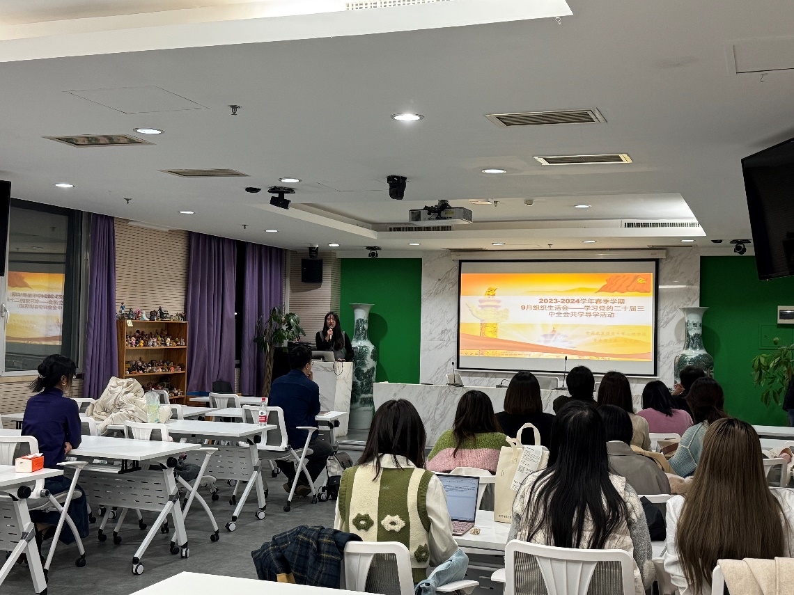 接下来,谢思琪同志作为导学人带领全体同学一同学习“习近平总书记致信全国优秀教师代表的重要指示精神”。 首先,谢思琪同志为大家介绍了《决定》的主题内容和总体框架。