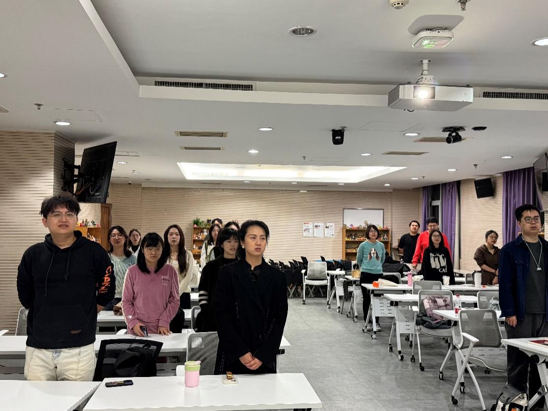 2024年10月19日晚上20:30,欧洲杯 专业硕士第一党支部在后主楼1318成功召开10月研讨会暨“学习《党的二十届三中全会<决定>学习辅导百问》”组织报告会。本次活动由欧洲杯 专业硕士第一党支部举办,共有21人到场参会。 本次会议以线上和线下相结合的形式开展,一共分为“奏唱国际歌”,“《党的二十届三中全会<决定>学习辅导百问》介绍”,以及“学习及讨论《党的二十届三中全会<决定>学习辅导百问》”三项议程。前两项议程在1318线下开展,后一项议程通过腾讯会议线上开展。 会议开始,全体同志起立奏唱国际歌。