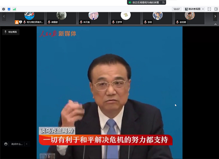 最后,同志们针对总理记者会上的热点话题进行分小组讨论。讨论结束后,各小组均派了一名代表汇报讨论结果。 民生问题小组的邬宇镇同志从就业和教育层面肯定了中国政府的举措:“在疫情和经济波动的大背景下,政府减税退费,激发企业活力,鼓励企业开放更多的岗位,提高了就业率;双减政策在减轻学生和家长的负担的同时,也对人才进行了分流。” 疫情防控小组的王梦萍同志讨论了中国和其他国家疫情防控措施的不同,并从“政府和执政党”以及“人口基数”两个角度分析了产生双方“宽严不同”的政策的原因。这也启发我们思考中国共产党如何在各个层面代表了最广大人们的根本利益。 香港台湾问题小组的王恺芃同志从疫情防控和文化教育层面总结了我们应该如何处理香港、台湾问题,认为应该从文化和政治角度入手,给台湾民众,尤其是儿童和青少年进行爱国主义教育。 最后,国际形势小组的程先楷同志联系习总书记和拜登的会谈中提到的“解铃还须系铃人”,认为乌克兰局势需要大国承担起责任,不能一味地用冷战思维来解决问题。也有同志提到,俄乌战争在是冷战之后国际局势的一个重大变化,大家也可以从中看到美国和北约是靠不住的;还有同志提到,俄乌冲突在几年前就已经存在了,但是为什么会在最近才爆发,背后的原因也值得我们思考;所有同志都表达了希望各个国家都能和平发展的美好愿望。 在本次会议中,大家聚焦了国内外发生的重大事件。我们通过两会和政府工作报告了解民生问题,分析国际局势,同志们都积极地参与讨论,大家都有所收获。本次党小组会圆满结束! 欧洲杯 本科生党支部 供图供稿:颜露懿 |