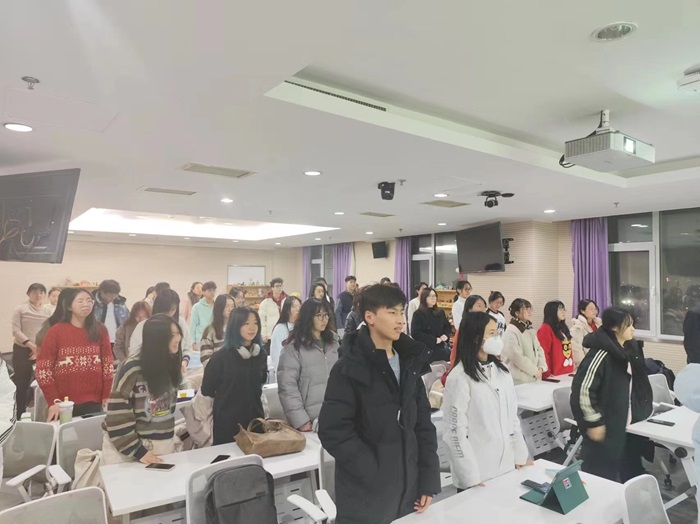 首先,全体起立,奏唱国际歌。 本次党日活动主要分为三个环节。首先,我们邀请了优秀的预备党员樊晓婷同志就寒假芬兰游学项目进行分享。樊晓婷同志从芬兰游学项目概述、行前准备以及游学感悟三个方面,生动地阐述了她在芬兰之行中的所见所感。在樊晓婷同志的讲解下,同学们对芬兰的风土人情有了更深入的了解,对芬兰教育特色有了更全面的认识,并在此基础上结合我国实际情况进行了批判性思考。我们在感叹芬兰教育之好的同时,也要意识到中国与芬兰的国情差异,取其长处助力中国的教育改革。通过此次分享,大家对“立德树人”的内涵有了更深刻的领悟,也对我国未来教育发展有了更多思考。