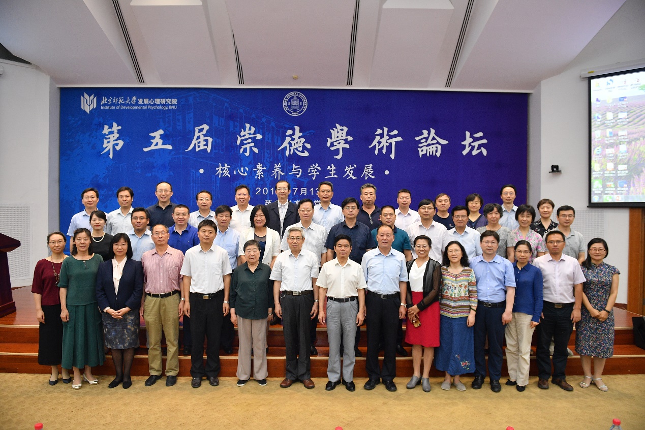 2019年7月13日,第五届“崇德学术论坛”于我校英东学术会堂成功举行。本次论坛由教育部人文社会科学重点研究基地北京师范大学发展心理研究院主办,北京师范大学资深教授林崇德先生,北京师范大学校长董奇教授,原东北师范大学校长史宁中教授,教育部教材局申继亮巡视员,中国心理学会副理事长北京大学苏彦捷教授,北京大学心理与认知科学学院院长方方教授,欧洲杯 党委书记乔志宏研究员,中国心理学会秘书长罗劲教授,北京大学元培学院党委书记吴艳红教授,山东师范大学党委副书记张文新教授,山西沂州师范学院党委常委、副院长罗小兰老师,北京师范大学科研平台建设管理办公室主任左锐老师,人民教育出版社魏运华副总编,北京师范大学音像出版社邱恋社长,北京心智计算科技有限公司CEO冯涛先生,以及各高校心理学院系或研究所的领导、专家、学生等300余人出席了本届论坛。