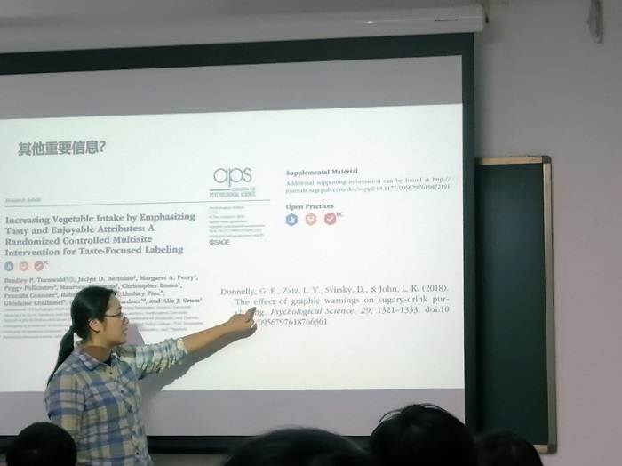 2019年12月13日晚6:30,学业辅导室在教二103举办文献阅读经验分享会。本次分享会邀请到了2015级本科生、2019级学硕高劭婧同学,有针对性地为大一到大三的同学讲解了英文文献阅读的方法。近70名同学参加了分享会。 首先,高劭婧同学为大一的同学们破解了一些读文献的误区,并介绍了心理学文献的基本结构,以实例来指导同学们获取文献中的基本信息。 对于经常需要做文献报告的大二同学,高同学列出几个要点,帮助同学们理清文献报告思路。对于准备开展自己研究的同学,高同学详述了文献调研的步骤以及阅读文献中需要注意的细节。 此外,高同学也为大三同学提供了文献阅读的进阶方法,即阅读期刊。随后,她向大家推荐了阅读文献的辅助工具。 在分享会的结尾,同学们针对自己在阅读文献中遇到的问题向高同学提问,高同学一一作出解答。 通过本次分享会,每个年级的同学都收获了现阶段所需的文献阅读经验,掌握了一定的文献阅读方法,同学们获益匪浅。 供图|欧咏恬 供稿|欧咏恬 |