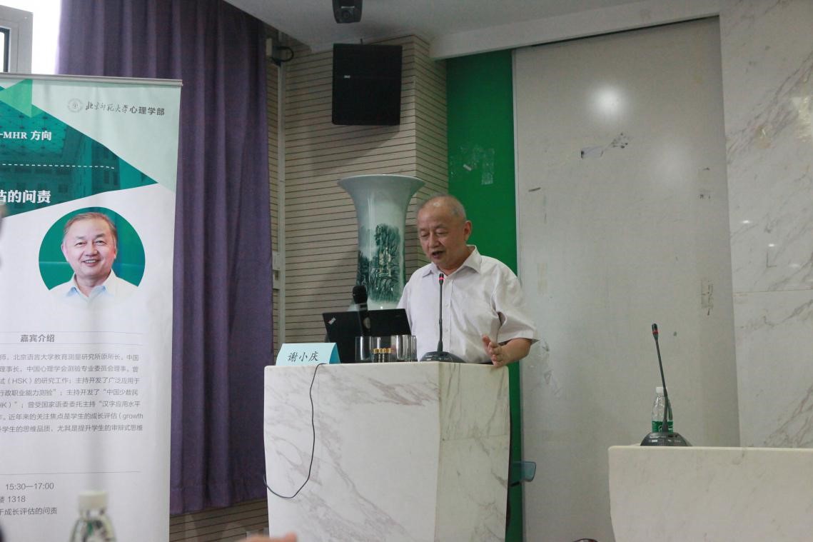 本次讲座的主讲人是心理测量与教育学方向资深专家谢小庆教授。谢老师是北京语言大学教育测量研究所原所长,中国教育学会统计测量分会副理事长,中国心理学会测验专业委员会理事。近年来的关注焦点是学生的成长评估(Growth Assessment)和如何提升学生的思维品质,尤其是提升学生的审辩式思维(Critical Thinking)水平。