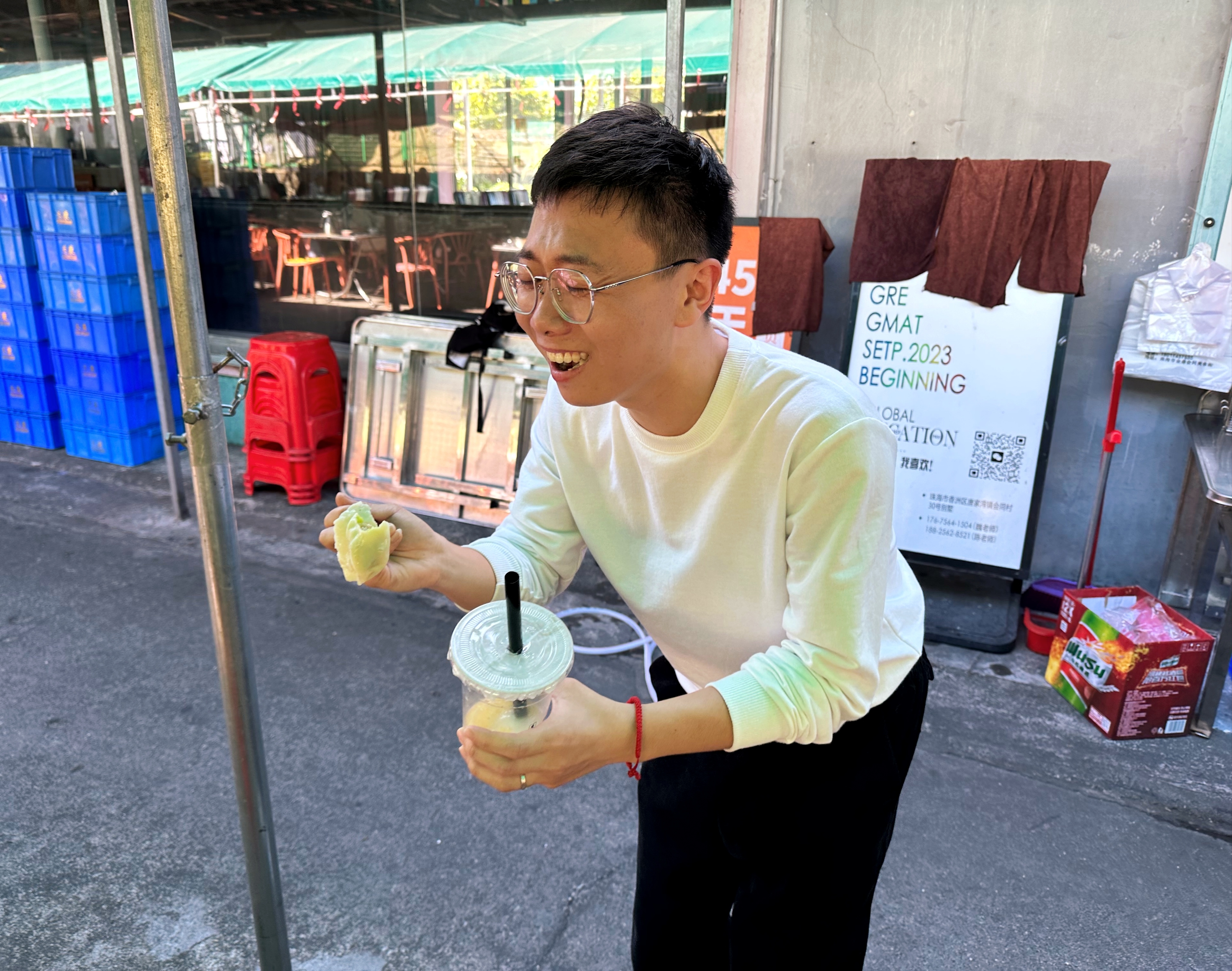 这不巧了么·幸运巧克力饺 “啊!这也太辣了!”方才热衷于往“就芥末流泪·小倒霉蛋儿饺”里猛添芥末的逯佩远同学,没想到回旋镖这么快就扎到了自己身上,双倍“幸运”的他就“芥末”留下了激动的泪水……而反观另一位“小倒霉蛋儿”黄逸同学则显得十分轻松冷静,表情淡定、毫无波澜地把饺子咽了下去。