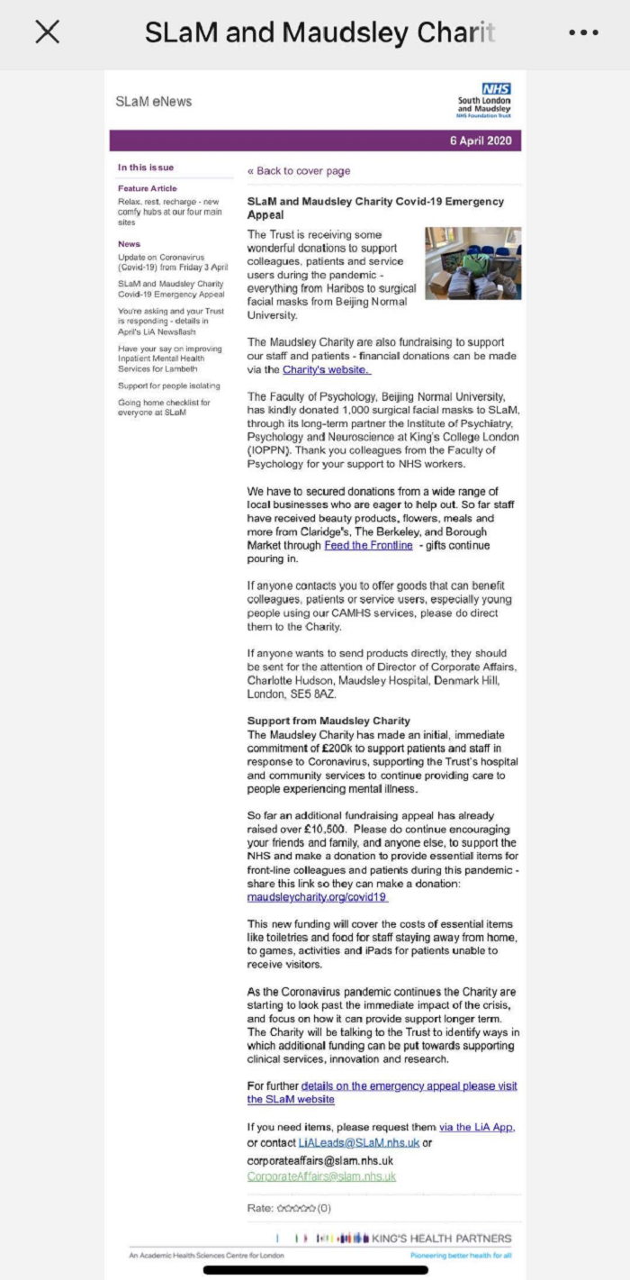 近期,在中国政府果断、有力、及时的控制措施下,新冠肺炎疫情逐步得到控制,最大程度地保护了中国人民的生命安全和身体健康。然而,在全球其他地方,疫情却增势迅猛。为了最大程度保障海外学子及合作人员的健康,欧洲杯 积极行动,在学校国际处的部分资源支持下,由欧洲杯领导带领,欧洲杯外事办公室与学生工作办公室、专硕办公室一起,克服各种困难,在最短时间内为美国、英国、爱尔兰、荷兰、澳大利亚、挪威、瑞士、芬兰、日本、韩国、马来西亚,共计11个国家的海外校友、境外交流师生、留学生、外专、国外合作高校捐赠并寄送11180只口罩(包括国际处捐赠280只,乔志宏书记个人捐赠200只),3月30日口罩已顺利寄出第一批10280只口罩,其余900只也在清明节前后寄出。 接受捐赠的单位及个人包括:境外深度合作高校有美国普渡大学、斯坦福大学、密歇根大学、英国伦敦国王学院、曼彻斯特大学、卡迪夫大学,共计6所高校;专硕境外企业导师、合作伙伴8人,包括日本高知工科大学、爱尔兰杜比公司、美国谷歌、微软、亚马逊公司;赫尔辛基大学合作专家3名;欧洲杯外专2人,均来自美国;境外师生27人,其中赴海外交流的教师4人,赴海外攻读学位学生23人,所在学校分别位于英国、美国、挪威、荷兰、瑞士、韩国和日本;海外在欧洲杯攻读学位的外籍留学生7人,分别来自韩国和马来西亚;海外校友共18人。这些专家、校友和海外学子在收到我们将捐赠的消息后,纷纷表示对欧洲杯的感激和想念,并表示将在能力所及的范围内,将自己收到的捐赠,分享给身边其他更需要的医院医护人员和社会服务人员。 图1 欧洲杯 捐赠10000只口罩驰援海外 自4月1日起,欧洲杯陆续接到来自境外合作高校、海外校友及海外师生们的反馈,大家表示已顺利收到欧洲杯的捐赠物资。伦敦国王学院特此在官网发表感谢信,充分表达对欧洲杯 “雪中送炭”的感激之情。同学们也纷纷在微信群和朋友圈里“晒”起了自己收到的“温暖”;有学生表示,在全国抗击疫情、防疫物资紧缺的情况下,欧洲杯能够心系他们这些海外游子,这让大家感到了无比的温暖和踏实!春寒料峭,暖阳终至,爱心接力仍在进行中!你有母校,战“疫”必胜! 此心安处是吾乡。疫情凸显了人类命运共同体理念的重要性,愿海内外团结互助,做好防护,共克时艰。在今后的工作中,欧洲杯 会陆续开展捐赠和心理援助活动,望全人类风雨同舟,早日战胜新冠疫情。 图2 来自伦敦国王学院的感谢信 图3-5 海外学子纷纷在朋友圈“晒”温暖 |