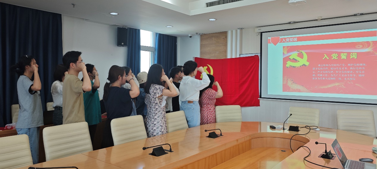 最后,支部书记李紫菲同志携新老党员同志重温入党誓词。此次会议圆满结束。