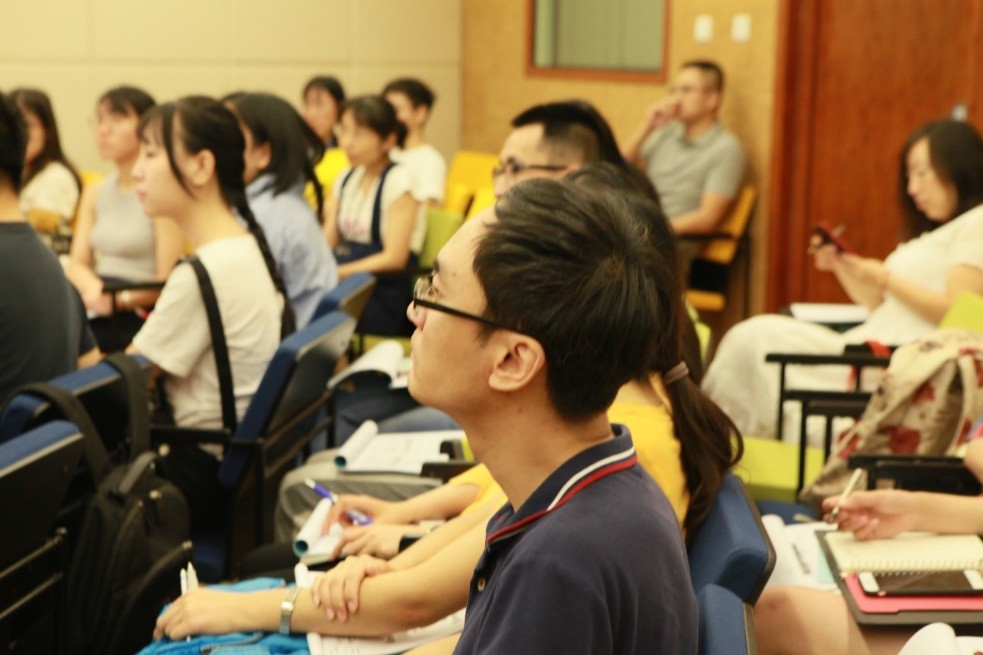 王教授说明“一次单元”并不是指只做一次咨询,只是把每一次当成最后一次,用一次咨询让来访者带走美好的经验。来访者来到咨询室就要根据“一次单元心理咨询咨询模式”的步骤让他有所收获。学员们被这样新颖的咨询理念所吸引,全神贯注地认真听讲,并不时对自己不理解或者感兴趣的问题进行提问,课堂气氛轻松活跃。