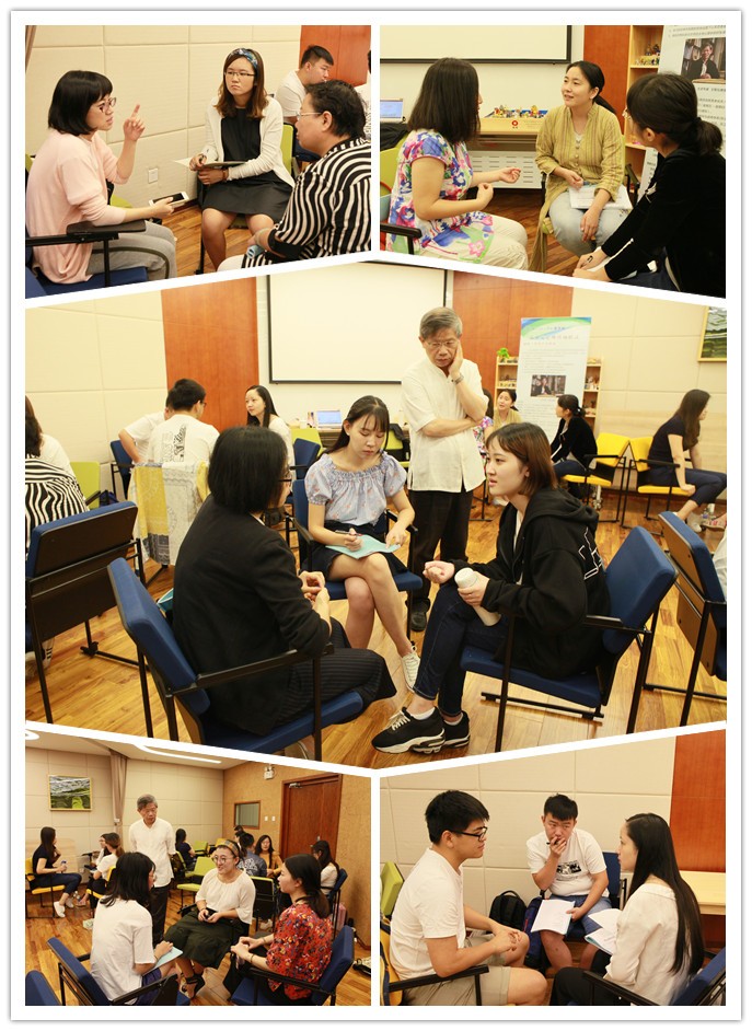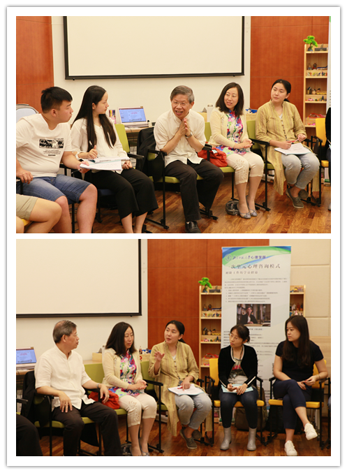 图8 王智弘教授为学员们进行“一次单元心理咨询模式”的督导 8月27日上午,王智弘教授为学员们讲解了 “一次单元心理咨询模式”在企业EAP及网络成瘾治疗中的应用。8月27日下午,学员们三人一组互相扮演对方的咨询师与来访者进行“一次单元心理咨询模式”网络成瘾治疗的小组练习。
