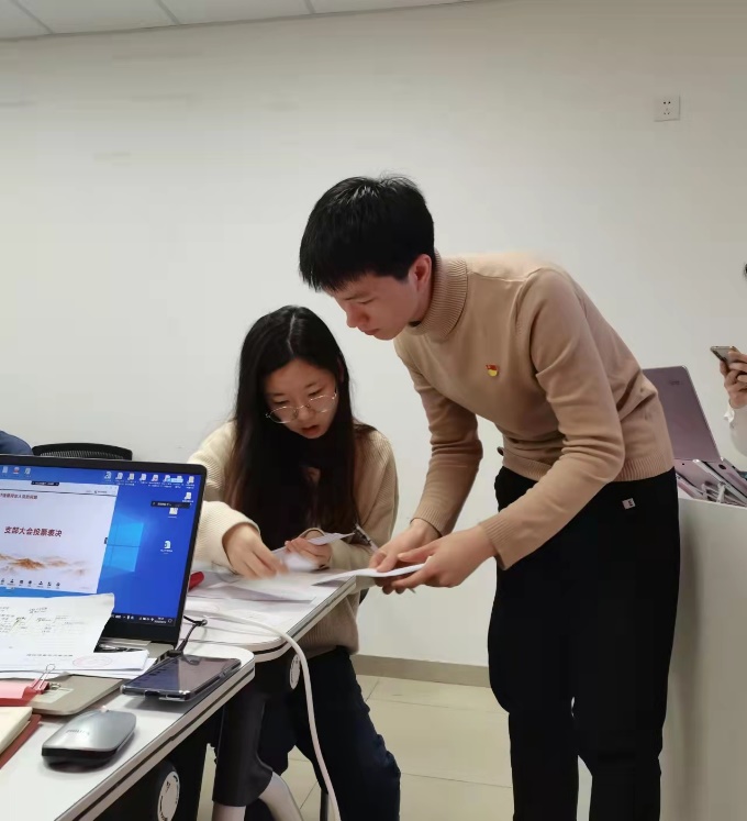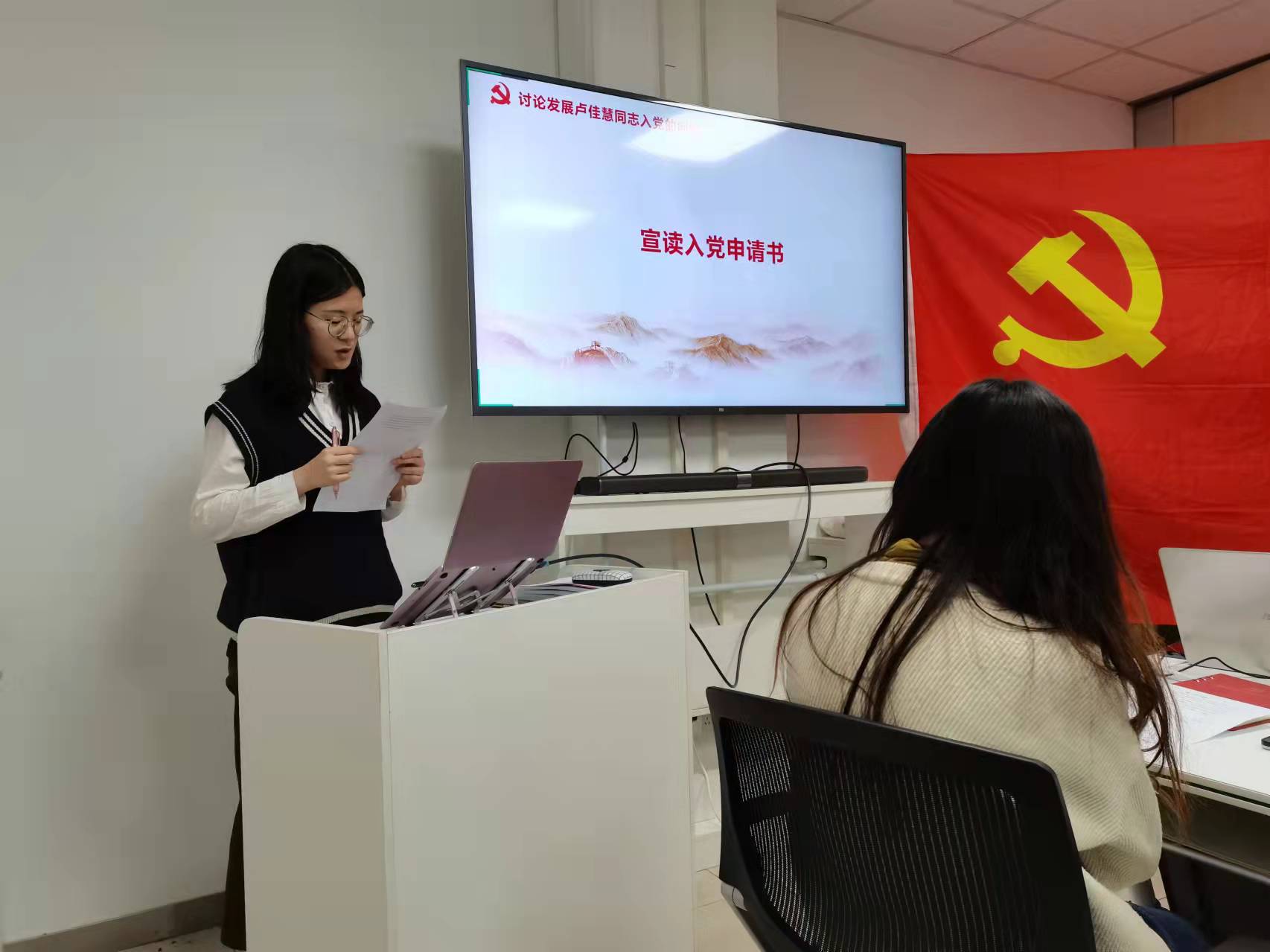 经支部大会无记名投票表决,对卢佳慧、王怡文、王欣、付玉四名同志的赞成人数超过应到会有表决权的正式党员的半数,报上级党组织审批同意接收其为预备党员。