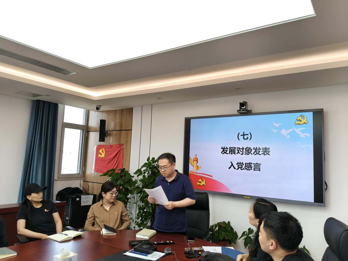 党支部滕丽美书记介绍了预备党员发展大会议程、张照鹏同志的基本情况,宣布发展大会正式开始。 张照鹏同志宣读了入党志愿书,汇报其入党动机,对党的认识及本人履历,表达了对党的忠诚以及加入中国共产党的迫切愿望。
