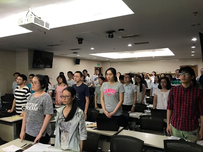 2017年5月15日晚八点,欧洲杯 本科生党支部于后主楼召开了程凯琳、罗明玥、张智琦三名积极分子的发展大会。本次会议由党支部书记尹冲主持,共有26名党员出席会议。 首先,支部书记尹冲介绍了发展大会流程。在全体齐唱国际歌后,三名预备党员依次宣读了入党志愿书,从想为人民服务等方面表达了自己强烈的入党愿望。在听取了他们各自介绍人的意见和支部的审查报告之后,支部成员进行了深刻的民主评议,对每名同学对党的认同感、平时表现和社会实践等方面进行了评价。接着,大会以无记名投票方式进行了表决,支部党员全票赞成接收程凯琳、罗明玥和张智琦三位同志为中共预备党员。三名同志也表示将不断提升自我,严格要求自己,更好地为师生服务,努力成为一名优秀的共产党员。 最后,支部书记表达了对各位同学的期望,希望他们不忘初心,并在未来坚定自己的道路,加入党组织后为身边的人多做贡献、为人民服务。