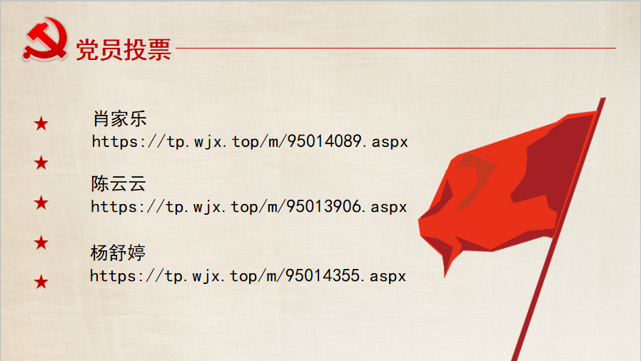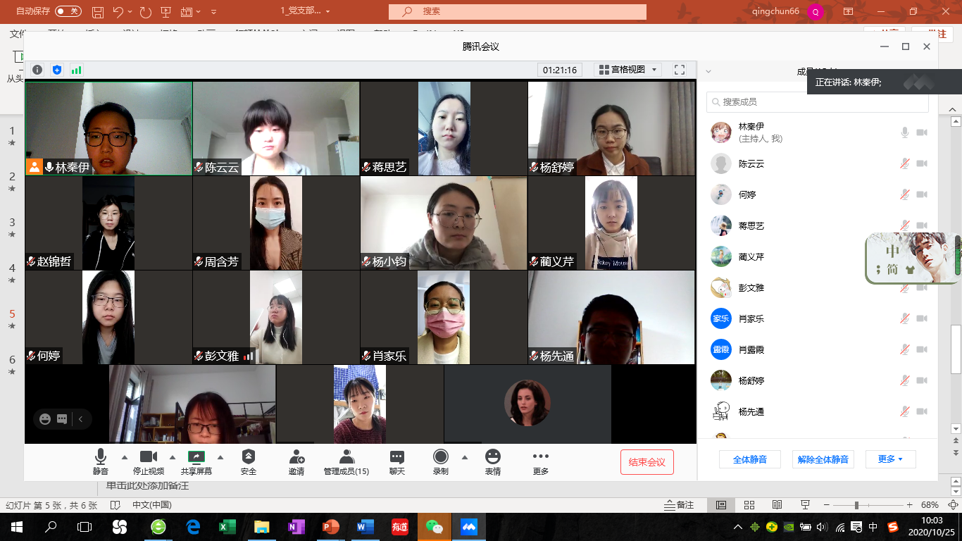 2020年10月25日早上9:00点至10:00点,欧洲杯 研究生第九党支部开展确定入党积极分子会。 首先,通过团推优会推荐上来优秀团员3名陈述自己的入党动机,如杨舒婷同学说到,自己出生在“红色故都”——江西瑞金,从小就受到红色文化的熏陶,对中国共产党心生敬仰和向往;陈云云说到,1966年河北邢台发生了6.8级的大地震,自己一位亲人的生命是由人民解放军从死神手中抢回来的,而今年的疫情和洪灾,千千万的党员奔赴一线,在各个地方放光发热,这更加坚定了自己想要成为一名共产党员、为人民群众服务的信念;肖家乐同学说,在接下来的日子,她会更加努力专注科学研究,让自己的研究成果能转化为更多为人民造福的应用类产品。 其次,党员对不清楚的地方进行提问。 接着,参会会议的12名正式党员分别点击三个同学的投票链接后,党支部书记根据投票结果宣布确定肖家乐、陈云云、杨舒婷等3名同学为入党积极分子。 最后,支部成员进行了合影留念!