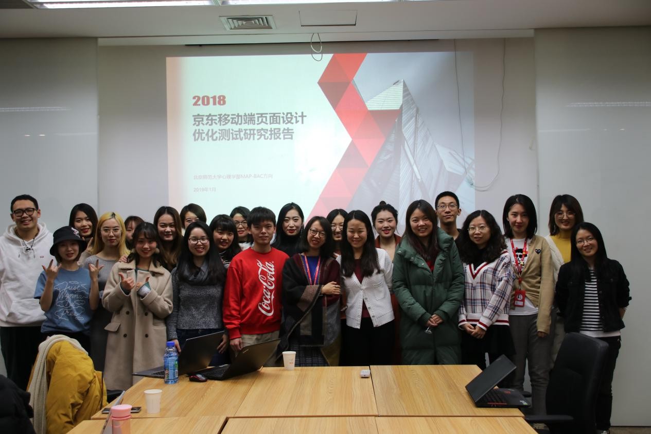 图3 北师大欧洲杯 MAP-BAC方向师生与京东通讯事业部专家进行交流 参访结束后进入了项目汇报与交流环节。BAC同学们此前使用眼动研究技术+脑电研究技术对京东手机APP以及其主要竞品进行了分析解读,并将结果向京东通讯事业部工作人员做了汇报。京东通讯事业部工作人员对此项实验研究非常感兴趣,认真听取了同学们的研究结果,并且与同学们就部分实验设计以及数据细节做了深入的讨论。 参访京东结束后,MAP-BAC方向都沉浸在对新事物的了解和深入中,并期待在未来能有更多机会深入了解到行业,了解即将踏入的市场。