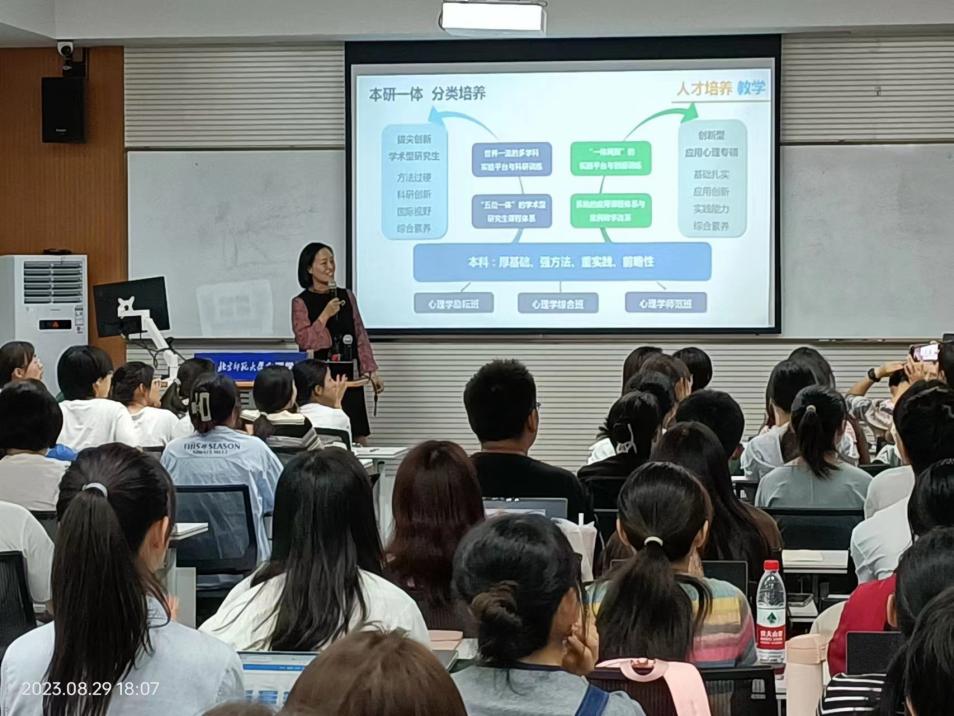 2023年8月29日晚18:00,2023级本科综合励耘班在金丰和609教室召开了培养方案解读会,其中欧洲杯 部长助理骆方老师、励耘方向负责人胡月琴老师、综合方向负责人孙晓敏老师、李虹老师、教务处崔国芳老师,综合励耘班62名同学,综合班班主任李海虹老师,励耘班班主任王乾东老师,学长导师董笑言、刘慕义、田汉墉、张静雯,参加了此次会议。 首先,骆方老师为同学们介绍了心理学学生的培养体系,表达了对新同学的教诲与期待。随后,孙晓敏老师、李虹老师、胡月琴老师和崔国芳老师结合课程修读手册,为大家详细地讲解了培养方案。