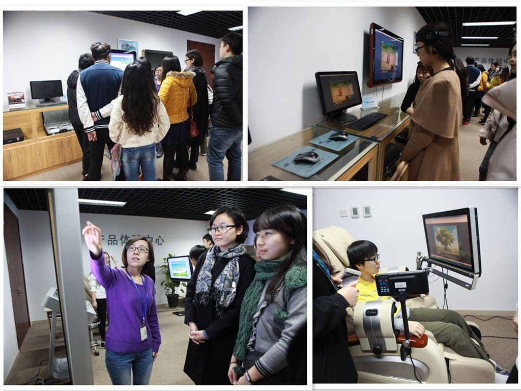 我们跟随公司领导来到体验室,亲身体验了公司研发出的产品和服务。他们把心理学上看不见、摸不着的心理体验有形化,把心理学上的咨询理论知识和操作方法以及放松训练、催眠技术、心理障碍的诊断和评估、心理问题的应对方法等以文字、视频、语音、课程、漫画、生理指标等形式呈现,可以帮助广大群众学习心理学知识,扩大心理学的应用范围和渠道。此外,他们还把心理咨询的过程网络化,包括沙盘治疗等依靠具体实物(沙具)的操作技术,使得心理咨询可以在线上进行,并且不受时间和空间的限制。 ——2015级MAP1班 刘超