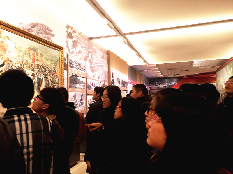 图1 2016学硕支部参观“英雄史诗 不朽丰碑”长征胜利80周年主题展览 图2 认真参观 参观结束后,在支书宋潮的组织下,各党员和积极分子分组进行了长征知识竞答活动,对长征过程中的一些重要人物、时间点和历史事件进行了知识问答,展现了大家对长征知识的了解,也加深了对展览内容的进一步思考,同学们参与踊跃,气氛热烈。
