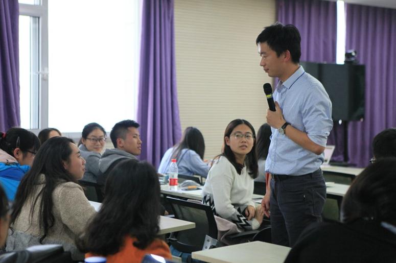 图2:任磊师兄现场向同学模拟面试官提问 “初试、二试、终试都包括什么?如何准备无领导小组讨论和结构化面试?”言之有物、言之有度、言之有心,是任磊师兄指出三点言语的艺术。不论是应对小组讨论还是面试官的询问,都要做到框架条理,观点清晰;不要急于回答,不要把话说满;不懂虚心请教,不忘记多微笑。 “面试官的问题真正想要考察你什么呢?”HR会出其不意问你开放式问题诸如“你遇到最大的困难是什么”,他想看到的或许并不是你曾经有多苦,而是你的成就动机有多足,抗压力有多强,这一切能不能体现在今后的工作上。 “You cannot turn better. But you can perform better.”任磊师兄在最后说,“我并不是期望你们听完一场报告,就从张三变成了李四。我只希望今后各位有更主动的应对姿态,和更好的表现。”