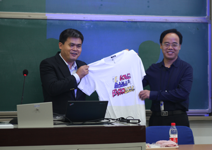 图2:北师大心理学院校友论坛第八讲-张西超教授赠送院衫 此次田效勋博士结合个人的创业经历分享了他目前正在做的事情:将心理学应用于人才管理。从人才模型、人才选拔、人才发展三个方面出发,讲述心理学与人才管理的紧密联系,并强调了人才选拔在其中的重要地位。分享中,田效勋博士通过无领导小组讨论的视频片段,带动全场观众尝试从观察行为推断应聘者的内在能力。观众们讨论热烈,发言精彩。关于人才管理工作会用的心理学知识,田效勋博士强调了心理统计学、心理测量学、组织行为学、人事心理学、心理咨询与治疗、人格心理学、认知心理学、社会心理学、学习心理学的重要性。