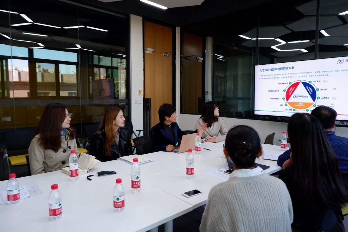 本次会议主要包括项目合作公司介绍、项目前期准备工作汇报及项目合作备忘录签署三个环节。在项目双方共同了解彼此的基本信息后,马丁森集团COO王琳女士从公司成就、特色测评产品及服务以及系列特色培训三个模块,为项目成员介绍了马丁森集团的概况,并详细阐述了本次实践项目的背景及服务对象。王女士强调测验工具的开发一定要关注用户需求,使产品更加贴近市场应用。