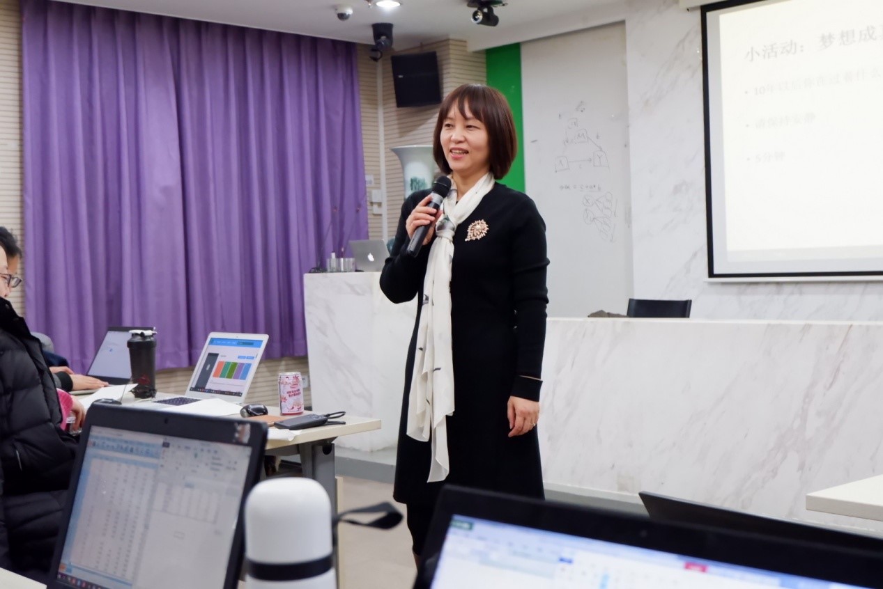 本次讲座的嘉宾是袁宝华女士,袁女士是和君集团企业大学设计中心研究员、国际注册管理咨询师、 全球职业规划师GCDF、人力资源管理师、 国际埃里克森教练学院认证教练、 生涯教练/生涯咨询师、新东方国际人才职业发展导师、大学生职业生涯讲师。袁女士有二十多年的教育培训行业经历, 致力于人才培养、 生涯发展领域的研究与实践, 可以提供发掘优势才干、职业发展或转型、女性生涯发展、 企业中高管生涯路径管理、 青少年生涯等方面的咨询、 教练和培训。 讲座开始后,主讲嘉宾带大家做了一个小游戏——让每个人想象10年以后的自己在过着什么样的生活,并画出来。五分钟后,和他人交换着画。在多次交换过后,画中自己未来的生活已不再是自己想要的样子。袁女士表示:“对自己的掌控力很重要,如果你规划不好自己,只能被他人规划。”这小游戏背后的道理引起了同学们的共鸣,让同学们深刻意识到职业规划的重要性。