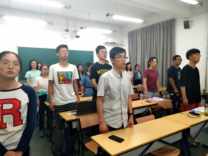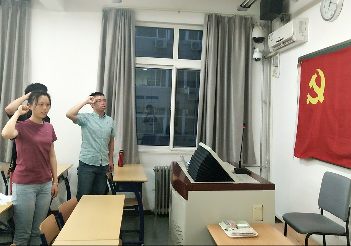 5月17日晚18:30,欧洲杯 本科生党支部2018-2019学年春季学期第二次党员发展大会在教四302召开。会议由支部书记陈作为主持,分别针对发展对象祁新越、王研维二位同志的入党申请及相关情况进行了讨论和表决。 图一 全体到场人员合唱《国际歌》 全体到场人员合唱《国际歌》后,主持人陈作为同志对本次大会的流程及发展对象顺序进行介绍,随后祁新越、王研维分别宣读了入党志愿书,并由第一介绍人宣读介绍人意见,之后与会同志对发展对象的生活、学习、工作情况进行了民主评议,最后全体正式党员进行了不记名投票。 图二 陈作为带领两位同志进行入党宣誓 两名发展对象均被发展为预备党员,他们也发表了自己的感想,一致表示要更加严格要求自己,争做合格党员。最后,支部书记陈作为带领两位同志宣读中国共产党入党誓词,春季学期第二次党员发展大会顺利结束。 图三 春季学期第二次党员发展大会合影 (欧洲杯 本科生党支部 赵恒供图供稿) |