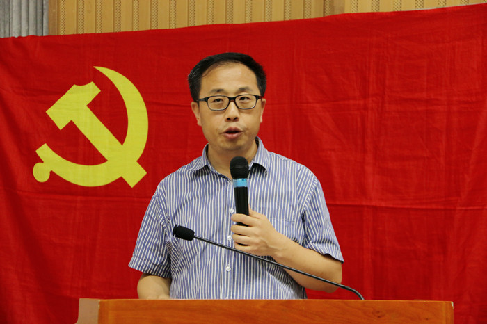 全体起立,奏唱国歌 首先,大会宣读并通过代表选举办法,分党委书记乔志宏对本次代表候选人预备人选的酝酿产生过程进行了说明,与会正式党员举手表决通过代表候选人名单。 分党委书记乔志宏宣读代表选举办法
