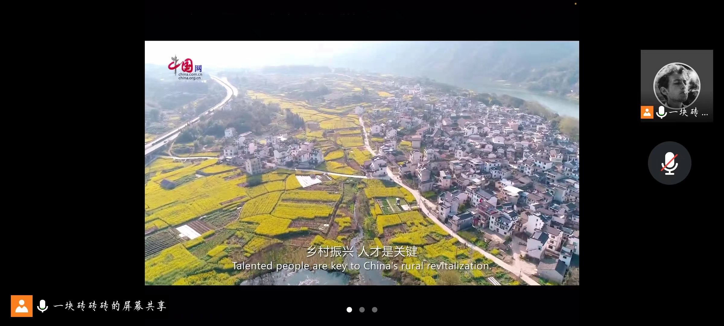 图1 团支书介绍中国梦的历史意义 本次活动由团支书曾宝怡同学筹备与主持,因疫情原因在通过线上会议的形式举行。本班全体团员和部分非团员同学均积极参会。