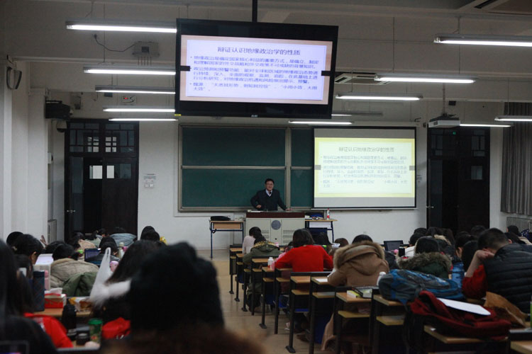 在讲座中,张胜军教授首先讲到了国际政治形势。他提到,现阶段是新的战略敏感期和矛盾多发期。他从四个方面进行了阐述。一是,中美俄欧日印地缘政治竞争加剧;二是,中国周边变数增加,事态升级的可能性增加;三是,伊斯兰世界派系矛盾与大国矛盾相互交织;四是,发达国家经济持续放缓、新兴工业化国家群体性崛起,结构性矛盾增加。 同时,张胜军教授谈到,我们要辩证认识地缘政治学的性质。地缘政治是确定国家核心利益的重要方式,是确立、制定和理解国家的外交战略和外交政策不可或缺的背景知识。具有政治预测和预警功能,能对全球和区域的地缘政治态势进行持续、深入、全面的观察、监测、追踪。我们应在此基础上进行分析研究,对地缘政治机遇和风险做出提示、预警。 随后,张胜军教授从地缘政治出发,谈到当今世界地缘政治的三个大局:亚太大棋局—中国崛起与美国重返亚太;欧亚大棋局—北约东扩与俄罗斯经营势力范围迎头相撞;中东大变局—阿拉伯之春、伊斯兰国(IS)崛起、美俄在叙利亚争夺主导权。他还提及到韩鲜半岛、南海岛屿之争等时事,语言风趣幽默,举例生动形象。 此外,张胜军教授讲到了自十八大以来中国的外交的重大变化和转型。他认为,中国外交一扫此前外交上的疲软颓势,主动出击,重新谋篇布局;主体意识明显增强,底线思维、以我为主、不再回避矛盾;顺势、借势和运势,表现为顺势推出“一带一路”,借助主场优势,开展主场外交,如亚信、APEC峰会等。 讲座尾声,张胜军教授还与现场学子进行了广泛、深入的互动交流,回答了在场同学们提出的相关问题。此次讲座受到了在场学子们的一致好评,张教授严谨的治学态度和独到的学术态度,向学子们深入浅出的分析了国际关系,以及学习如何做好政治的研究工作。