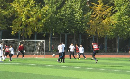 2016年11月2日中午12:00,心脑联队在西操场南侧对阵小组赛的第三位对手核科队。 随着主裁判一声哨响,比赛开始了。上半场我方由东向西进攻,根据赛前对对手的观察,队长贾子豪制定了有针对性的战术,高强度的逼抢让对手很不适应。上半场第7分钟,我方22号尹泽轩在禁区弧顶位置受到侵犯,裁判判罚任意球。尹泽轩发出低平球,对方门将扑救不及,皮球钻入球门,1-0!
