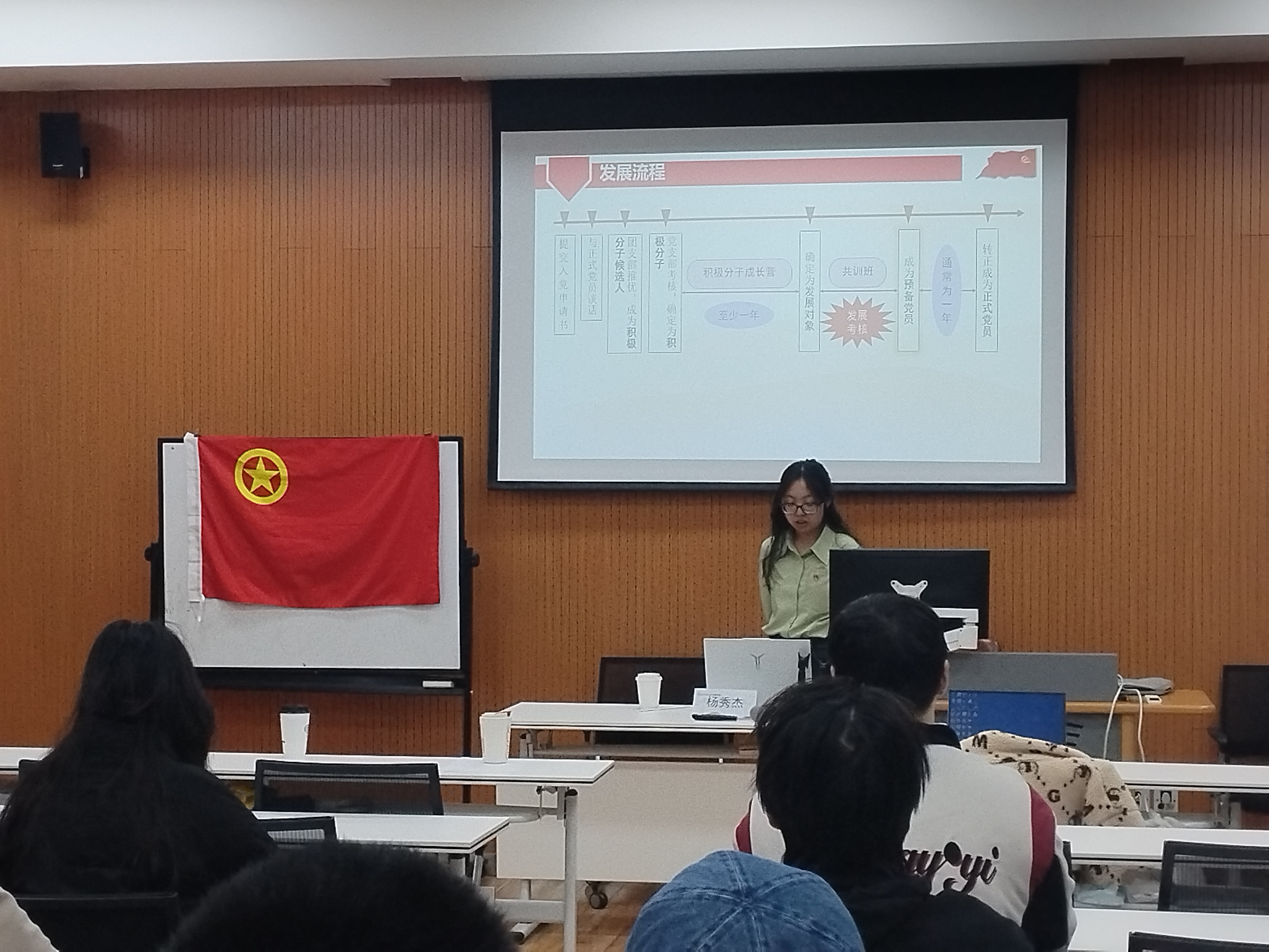 "推优入党不是终点,而是追求进步的新起点。"党支部杨雨凡师姐以清亮的声音开启专题讲解,将发展党员的各个阶段步骤娓娓道来。