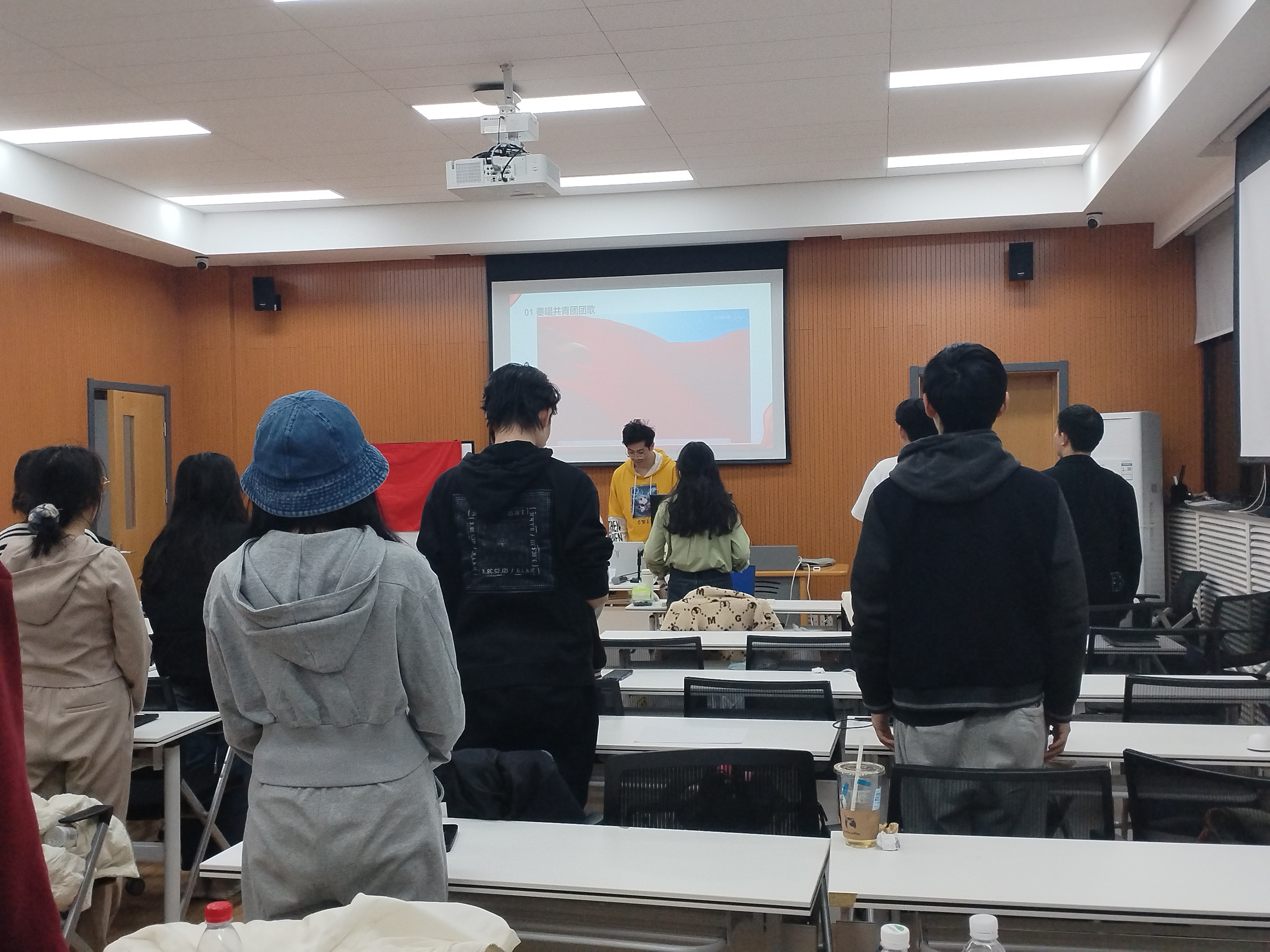 当《光荣啊,中国共青团》的悠扬旋律在会场响起,全体起立的青年们用挺拔的身姿铸就一道流动的风景线。他们胸前的团徽在灯光下熠熠生辉,嘹亮的歌声里饱含着新时代青年对祖国的深情礼赞。这曲穿越时空的红色旋律,不仅唤醒了在场每个人的热血记忆,更将"永远跟党走"的信念深植心田。