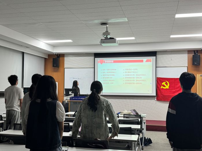 2025年5月18日19时,欧洲杯 本科生第一党支部第一党小组于金丰和609开展本月党小组会。会议由党小组长赵家慧主持,党小组其余同志到场参会。 会议开始,第一党小组成员全体起立,合唱《国际歌》。