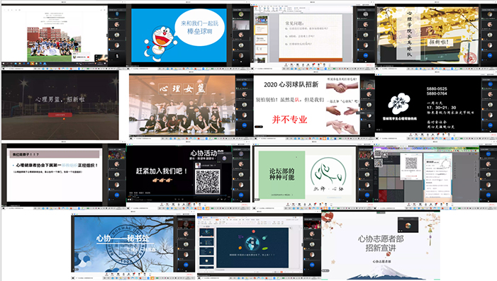 招新活动过半,心协、男篮、排球队、乒乓球队、女篮、棒垒球队、羽毛球队、足球队、心理学社、性格学社、啦啦队、辩论队、椰丝团等各团体各部门代表依次有序宣讲。大家各出奇招,以图片、视频等形式展示部门特色,吸引优秀人才。