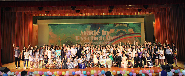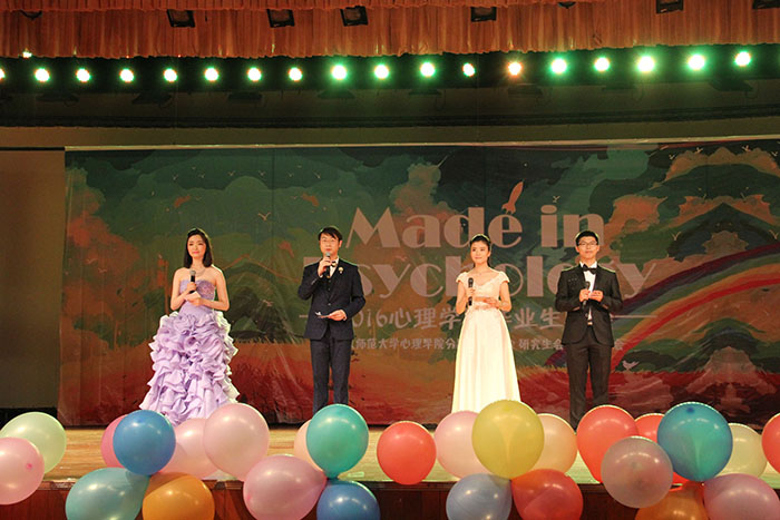 2016年5月28日晚7点,“made in psychology”——心理学院2016届毕业生晚会在学生活动中心隆重举办,心理学院2016届毕业生们迎来了一场属于他们的送别盛会。院长刘嘉、分党委书记乔志宏、分党委副书记王瑞敏、教务办公室主任邢爱玲、分团委书记史佳鑫、李虹、胡清芬、黎坚、曹昌健、李昕益、张晓娜、王娟、李爽、崔艳丽、刘振华等老师出席,毕业生张笑然、黄珊、邓衍鹤、方昱沣主持。 Mayo乐队的开场节目《挣脱》首先点燃了晚会火爆的气氛。晚会分为三个板块进行。在第一个板块“打磨岁月”中,《缘来是你》、《有点甜》和《You raise me up & Memory》等歌曲给全场带来了一场听觉盛宴。史傲雪、赵健宇等同学的《Try everything》和13级学硕带来的《HAN风》两个舞蹈持续推动现场气氛。第二个板块“整装待发”中,唐淼、王莹、韩璐的《棠梨煎雪》与张乔茜、方昱沣等同学的《你曾是少年》款款动人、余音绕梁,张文、洪韬的宅舞《Bilibili》夺人眼球,大宣宅帝国带来的小品《打倒大魔王》也博得了阵阵笑声。之后是抽奖环节,主持人从对毕业生的留言中抽取了八条并在晚会后为幸运的留言者送上了精心准备的礼品。第三个板块“闪耀未来”中,舞蹈《大王教我打排球》将全场气氛推向高潮,《直到世界的尽头》、《We Are Young》、《突然好想你》等歌曲也精彩万分。最后,由2016届毕业生共同带来歌曲《We Are Psychers》和黎坚老师深情献唱《凤凰花开的路口》,感动全场,为晚会节目画上了圆满的句号。 晚会过程中穿插了毕业生视频和老师的祝福视频。毕业生们在视频中回首过去、展望未来,讲宿舍糗事,分享自己的遗憾,有对青春的缅怀,有面临分离的不舍,也有对未来的憧憬期待。老师们表达了对毕业生的期望,并希望他们不忘初心,继续前行。老师们的祝福更是深深地触动了毕业生的内心。 晚会结束后,全体师生合影留念,纪念在师大共同度过的美好时光。相信每一个心理制造的同学们将会前程似锦,成就未来道路上更美的风景! 如需红毯照片,请点击//sdyp.ouzhoubeitop.com/shareFolder/92690001/BF9x9DuP7下载。
