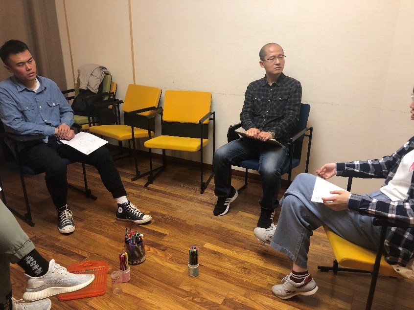 2021年5月8日至2021年5月15日每周六上午9:00-12:00,下午14:00-17:00,共7名同学参与由学生心理咨询与服务中心和欧洲杯 生活指导室主办的“人的自我对待——压力、情绪管理小组”团体辅导活动。本次团体活动由北师大心理学生心理咨询与服务中心特聘咨询师王延辉老师带领,通过同学们互相交流讨论,引领同学们说出压力、情绪的来源,达到压力的释放、情绪的管理。 第一周活动在京师大厦心理健康服务中心团体辅导室一进行,上午九点,老师首先组织同学进行自我介绍活动,每位同学为自己起了代号,小组成员在活动中以代号形式互相称呼。 短暂的休息过后,老师组织同学们用彩笔及白纸表现出自己的情绪体验,然后轮流进行分享,同学们积极参与并分享了自己关于学习规划、社会交往、自我关怀等方面的经历和情绪。 下午两点,经过老师对上午活动同学们分享的经历进行简单的总结后,同学们继续进行情绪画像的分享。分享过程中,同学们交流了过往重要的经历及情绪体验,对他人的情绪表示理解,然后共同探讨了应对情绪的方法。 下午四点,老师对应对压力和情绪体验的方法进行了梳理和总结,并根据同学们所分享的压力情境请同学们进行角色扮演活动,体会情景中的情绪感受,并让同学们交流活动中的收获。 第一周的活动到此结束,同学们表示在小组自由交流的氛围中感受到了他人的真诚和关怀,并对下周的活动表示期待。 第二周的活动在后主楼1420研讨室进行,早上九点,老师让同学们简单回忆上周演示的感受与疑问,并逐一进行分析。在解决同学们的困惑后,老师总结我们应该学会自我觉察、自我探索、走进自己的内心。