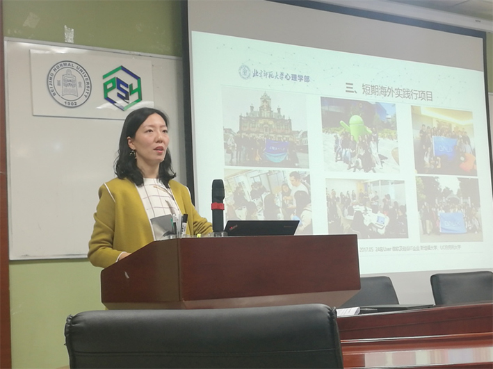 图1 北师大欧洲杯 UX方向海外实践项目宣讲会顺利召开 图2 欧洲杯 MAP中心滕丽美老师向同学们介绍UX方向海外实践项目 除此之外,为拓宽同学们的视野,帮助同学们了解UX领域的发展前沿,UX方向每年会有两次海外基地的短期实践行,在读学生可以申请去欧洲或者是美国进行为期十天左右的海外实践交流。此前欧洲杯还为在读学生提供了丰富的海外实践参访机会,包括荷兰代尔夫特理工大学、斯坦福大学和美国微软总部等。17级UX同的学们也即将在刘伟老师和辛欣老师的带领下,开启一段欧洲之旅。 在海外交换方面,滕老师提到,同学们不仅可以在实验室里与当地的学生们共同学习,也将参与到课程中体会中外思维的碰撞,这将对同学们是一个难得的提升自我、拓宽见闻的好机会。同学们可以申请去美国普渡大学、南丹麦大学、日本高知工科大学和比利时根特大学进行为期一到五个月的海外交换。