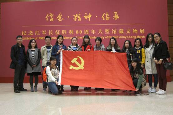 80年前,中国工农红军行程二万五千里,完成了前无古人、后无来者的长征,为中国革命的胜利前进奠定了重要基础。为了纪念中国工农红军长征胜利80周年,2016年10月22日上午,2015级学术硕士党支部组织党员和积极分子共22人走进了由国家博物馆举办的“信念·精神·传承——纪念红军长征胜利80周年大型馆藏文物展”。该展览呈现了战斗武器、布告、地图、歌曲诗篇、学习课本、烈士手稿、红军家信等多种类型的文物以及馆藏美术作品近300件,从多个角度全面展现红军在长征中的战斗、生活、学习和互助的场景,充分反映了不怕牺牲、紧密团结、艰苦奋斗、患难与共、坚守理想信念的“长征精神”。 在参观过程中,刘笑笑、马佳琳两位同学根据自己查阅的资料,为大家讲解了一件件珍贵文物背后的人物与故事,让大家更加深入地了解了红军在长征途中如何运用非凡的智慧战胜敌人,如何在最艰苦的自然环境和生死考验中坚守信念,如何与沿途人民群众建立起鱼水深情。 红军长征途中穿过的草鞋、过草地时用来充饥的皮鼓、途经草地时煮野菜的铜提盒、“红小鬼”参加长征离家时留给母亲的步币…这些文物一次次地将我们带回那个战火纷飞的时代,将鲜活的历史展现在我们面前,也激发了大家的热烈讨论。 在历史文物和艺术作品的熏陶中,我们亲身体会到了什么是长征精神,在感动的同时也更加意识到作为学生党员身上肩负的责任——传承长征精神,走好新时期的“长征路”。 这次参观活动让大家重温历史,从革命先辈们的事迹中汲取智慧和信念。愿2015级学术硕士党支部的成员们能够将长征精神真正应用到自己的学习、工作与生活中,继续为党组织的事业贡献力量。 2015学术硕士党支部