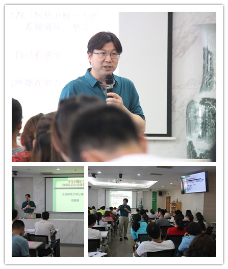 2018年7月4日-9日,欧洲杯 EDP中心举办了为期6天的“郑州市第五十二中学教师提升研修培训”,共90名五十二中的教师参加了本次培训班。培训班开班仪式由欧洲杯副部长王君主持并致辞,王君部长对各位学员的到来表示热烈的欢迎,为学员们介绍了北师大欧洲杯 的发展历史及现状,对学员们接下来的培训学习表达了殷切地期望。开班仪式后,此次培训在轻松愉快的氛围里拉开帷幕。 图1 欧洲杯 王君副部长为培训致欢迎辞 7月4日上午,欧洲杯部长刘嘉教授以“心理学与生活”为主题向各位学员介绍了心理学的历史,带领学员们走入心理学的殿堂,让学员们对心理学有了初步的了解。随后刘嘉部长为学员们介绍了人脑的特点与功能及心理学与日常生活的联系,以错觉小实验与变化盲视来讲解眼见未必为实,提醒各位教师在处理学生问题与工作生活中的问题时不要只看表面。刘嘉部长以幽默的讲课风格,为学员们介绍生活中很多与心理学有关的实例,将理论与有趣的生活事例相结合带领学员们感受心理学的魅力并引导学员将心理学知识应用于日常生活之中。 图2 欧洲杯 刘嘉部长讲授课程“心理学与生活” 7月4日下午,欧洲杯老师带领各位学员在欧洲杯 实验室与欧洲杯 心理健康服务中心进行参观交流。欧洲杯老师向各位学员介绍欧洲杯实验室及一些研究项目,让学员们在实地实际感受了心理学实验是怎样开展进行的,以及实验研究对心理学的重要性。 图3 欧洲杯 EDP中心组织学员参观欧洲杯实验室与心理健康服务中心 7月5日上午,以大中小学生的心理健康与家庭治疗为主要研究方向的蔺秀云老师围绕着“青少年行为问题及干预”进行了培训课程。首先蔺老师向各位学员介绍了学生们青春期时特点及心理问题,分析青少年逆反行为背后的心理,帮助老师理解青少年。在课上蔺老师让老师们提出目前所遇到的问题,帮助老师分析问题原因并提供解决方案。接下来蔺老师就青少年常见的一些心理问题,如人际困扰、性冲动与异性交往困扰及其他心理障碍,分析心理问题的来源;并针对不同心理问题提供切实可行的解决方法,帮助各位老师在工作应对学生表现出的心理与行为问题。 图4 欧洲杯 蔺秀云副教授讲授课程“青少年行为问题及干预” 7月5日下午,北师大欧洲杯 应用中心主管梅海燕老师以“培养成长型思维,促进师生积极发展”为主题开展讲座内容。在上课之前梅老师带领大家进行了身体热身活动,顿时课堂上充满了欢声笑语,在欢笑声中开始了下午的课程。梅老师先向各位学员介绍何为成长型思维,并提供测试成长型思维的方法,帮助各位学员识别怎样的思维方式属于成长型思维,在未来的教育工作中去发现并培养学生的成长型思维。接下来,梅老师便向学员们介绍了怎样去培养成长型思维,在他人做得好的时候可以用“你是如何做到的,你是怎么做到的”进行询问,夸奖他人时具体地夸奖哪里做得好,让学员们能在之后的生活中实际有效地培养自己与他人的成长型思维。 图5欧洲杯应用中心主管梅海燕老师讲授课程“培养成长型思维,促进师生积极发展” 7月6日上午,伍新春教授以其幽默风趣的授课风格为学员们讲授了“学生问题行为的科学认识与有效管理”。伍教授首先介绍了问题行为的界定,为学员们区分了异常行为、正常行为与超常行为,并提供了区分的不同标准,如社会特点、时代特点、群体差异与常模参照,带领学员多角度地认识何为问题行为。接下来分析了问题行为的功能,随后介绍了问题行为的的管理原则,帮助学员们理解问题行为产生的原因以及怎样针对原因来管理问题行为。 图6 欧洲杯 伍新春教授讲授课程“学生问题行为的科学认识与有效管理” 7月6日下午,北师大欧洲杯 快乐学习中心主管刘朝莹老师围绕“家校合作新模式—行为契约双师课”开展讲座内容。家庭、学校,作为孩子成长的两个重要“摇篮”,对孩子的教育和成长发挥着举足轻重的教育作用。随着人类社会的进步发展,教育领域正在发生深刻而广泛的变化。家庭在学校教育中的地位和作用已引起全世界范围的关注。刘老师通过讲座帮助各位学员了解行为契约的理念,掌握行为契约的三要素;了解行为契约双师课的内容,掌握家校合作的新模式。 图7 欧洲杯快乐学习中心主管刘朝莹老师讲授课程“家校合作新模式—行为契约双师课” 7月7日,欧洲杯张日昇教授为学员们讲授了箱庭疗法的理论与应用,并带领学员们亲身体验了箱庭的制作。在讲座开始之前张教授将学生作为一名心理咨询师的角色进行了规范的要求,如:关掉手机,放下水杯,不许迟到等,课程充满了心的能量场。张教授以个人的亲身经历,将“心”的世界带入到我们的生活中。张教授告诉大家心理问题“说出来就好了,哭出来就不痛了”,在心理咨询中,治疗关系很重要,咨询师们应重视治疗关系,把握母子一体性。箱庭理论结合了东西方文化,主要涉及到了三大理论学说,弗洛伊德的无意识理论,荣格的分析心理学以及人本主义理论,其中,箱庭理论主要源自于荣格的分析心理学。箱庭世界的玩具被赋予了象征意义。个体通过沙子、沙盘赋予其人格,比如,沙子孕育着回归、大地、整合,通过与沙子的融合退行到母体的感觉。在下午的课程中,张教授带领大家进行了团体箱庭的制作,让所有学员都切生体验了箱庭
