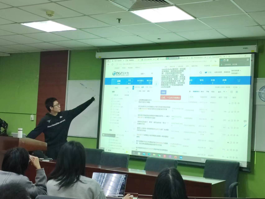 然后,田汉墉针对23级的同学进行了如何查找文献的经验分享。田汉墉先为大家整体地介绍了文献查找方法,之后根据不同类别的文献分别进行了实操演示,为大一的同学们步入科研道路打好基础。