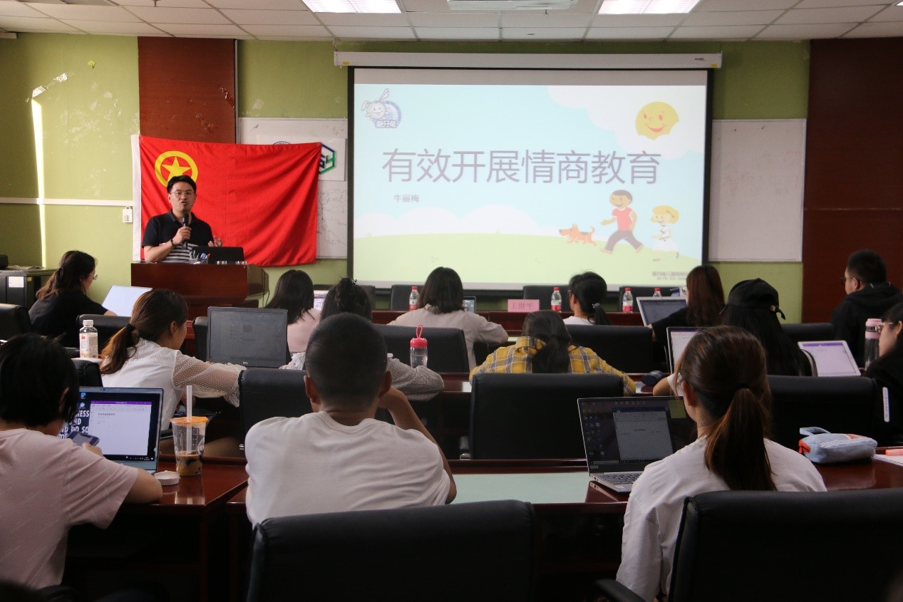 5月31日晚上6点,由“服务学习”实践创新辅导员工作室主办,欧洲杯 团委实践部协办的“情商教育”主题培训在后主楼1420正式开始。本次讲座有幸邀请到龅牙兔儿童情商乐园的资深情商训练师牛丽梅老师来为同学们培训“如何为中小学生开展情商教育”,讲座由林思丽老师主持,40余名暑期支教队队员前来学习。 讲座中,首先由龅牙兔儿童情商乐园王世平总监进行开场介绍,王世平总监介绍了龅牙兔情商乐园成立与发展的经过,目前龅牙兔已覆盖全国上百座城市,建立187多家情商乐园,每年都有上万名儿童进入龅牙兔学习情商。 接着牛丽梅老师主讲:情商教育是什么?情商训练如何起作用及具体如何做?如何成为合格的儿童心理辅导老师? 第一部分中,牛老师为大家阐述情商教育就是在体验中学习:去设置场景,带孩子体验,进行思考总结形成习惯性思维。 第二部分中,牛老师重点讲述情商训练的具体方法,强调与孩子建立积极关系,坚持每个孩子都是独一无二的原则,去投入的、不带目的地与孩子一起玩,对孩子表示兴趣并给予标志性表扬。现场4名同学和老师一起进行游戏互动,去体验在游戏中训练孩子情商。通过引入、规则、体验、提问、总结等步骤让同学们深入了解情商技巧训练策略。 图 4名同学现场做游戏 在第三部分,“如何成为合格的心理辅导老师”引发在场同学们的思考和讨论。牛老师一再强调:“当你们在支教过程中扮演老师的角色时,一定不要把自己当做高高在上的老师,而是情商环境的创设者、情商活动的组织者、儿童的引导者与陪者。”在牛老师的指导下,同学们就如何成为合格的心理辅导老师展开热烈的探讨。 讲座的最后,牛老师把“教育,就是用生命影响生命”这句话送给即将开始暑假支教活动的同学,愿与同学们共勉。同学们纷纷表示收获良多。 (张曼玉供图供稿) |