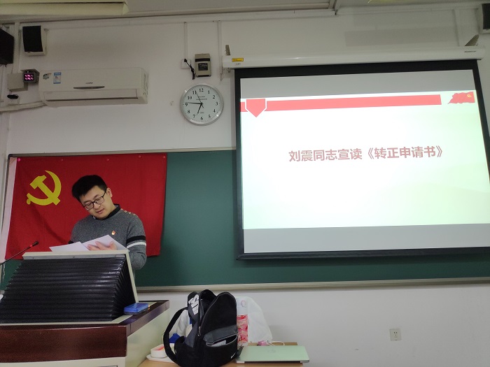 2019年11月28日,研究生第七支部于教二102召开预备党员转正大会。本次转正大会,有14名党员参加(包括2名预备党员),转正的预备党员为谭玉鑫、刘震两位同志。 本次转正大会由组织委员董丹主持。转正大会开始前,全体党员起立共唱国际歌。 首先,进行谭玉鑫同志的转正工作。谭玉鑫同志宣读《转正申请书》,随后入党介绍人介绍谭玉鑫同志有关情况,与会党员对谭玉鑫同志能否按期转正进行讨论,正式党员对谭玉鑫同志能否转正采用无记名投票方式进行表决,监票人宣布结果,组委宣布谭玉鑫同志按期转为正式党员的决议,谭玉鑫同志进行自我表述。 其次,进行刘震同志的转正工作。刘震同志宣读《转正申请书》,随后入党介绍人介绍刘震同志有关情况,与会党员对刘震同志能否按期转正进行讨论,正式党员对刘震同志能否转正采用无记名投票方式进行表决,监票人宣布结果,组委宣布刘震同志按期转为正式党员的决议,刘震同志进行自我表述。 两位顺利转正的同志都表示,今后将努力发扬自己的优点,不断改正自己的不足,更好的完善自己。 供图、供稿:全体支委 |