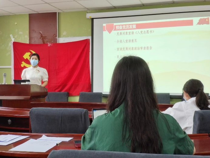 游越首先宣读入党志愿书,介绍了自己的家庭背景、经历和入党动机。随后,入党介绍人刘亚男同志对游越同志的情况进行了客观的介绍与评价。